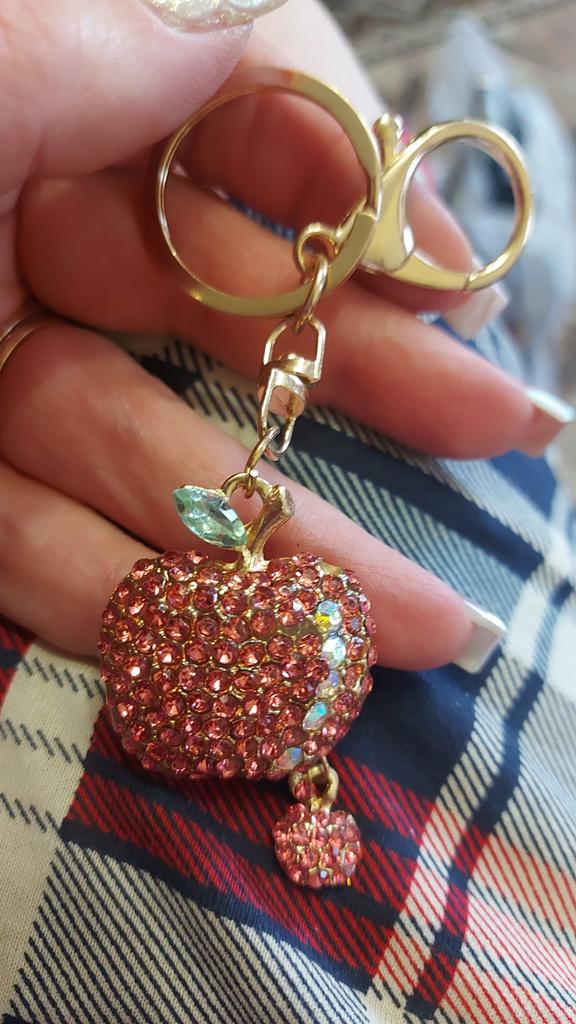 Fashion Cute Rhinestone Apple Keyring Alloy Car Key Chain Purse Bag Decor Gift
