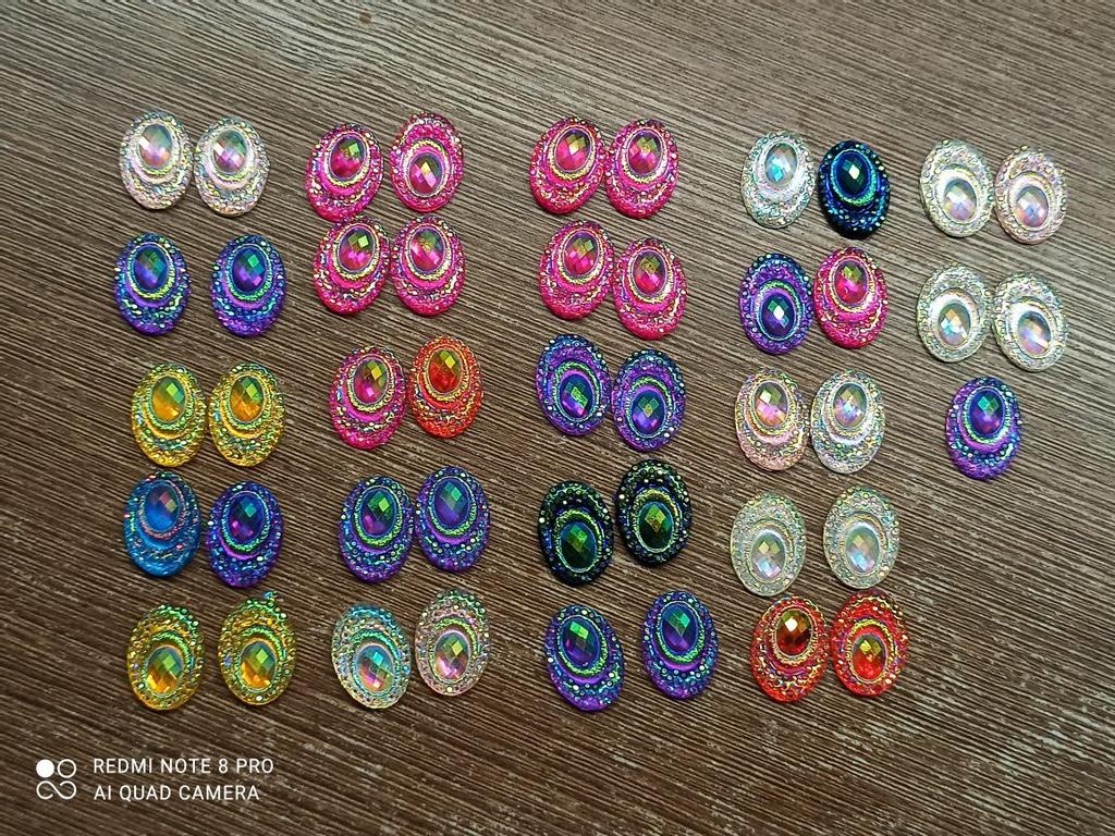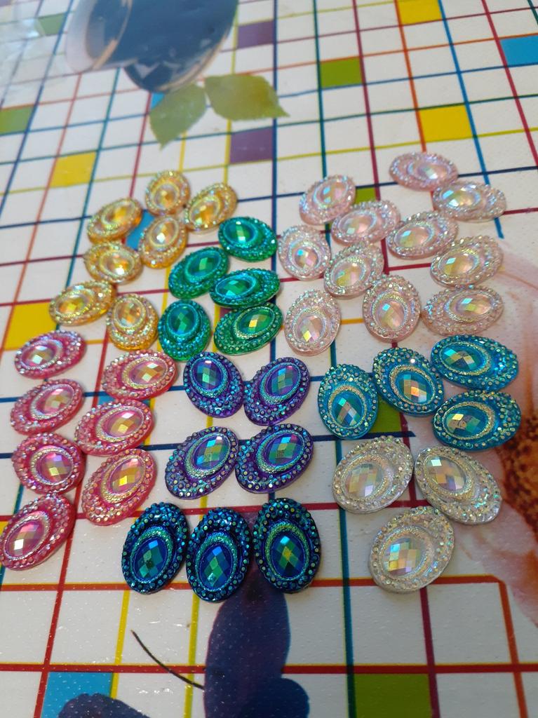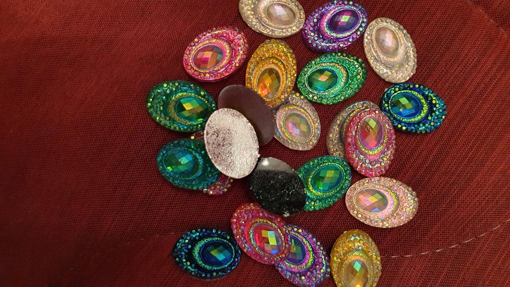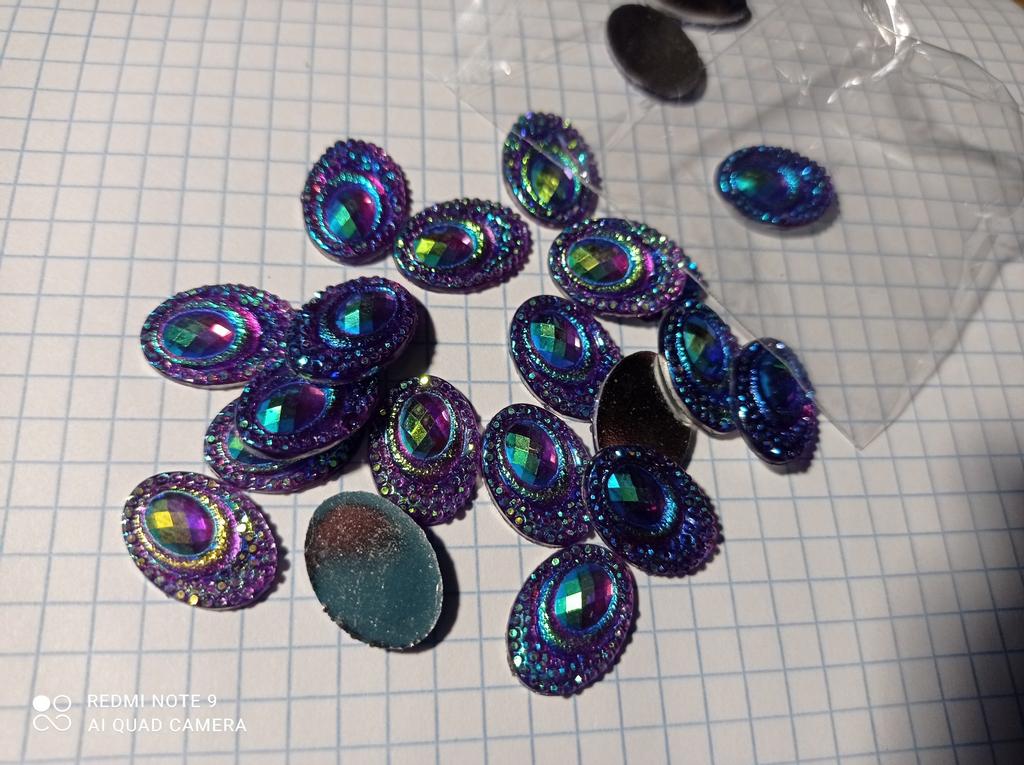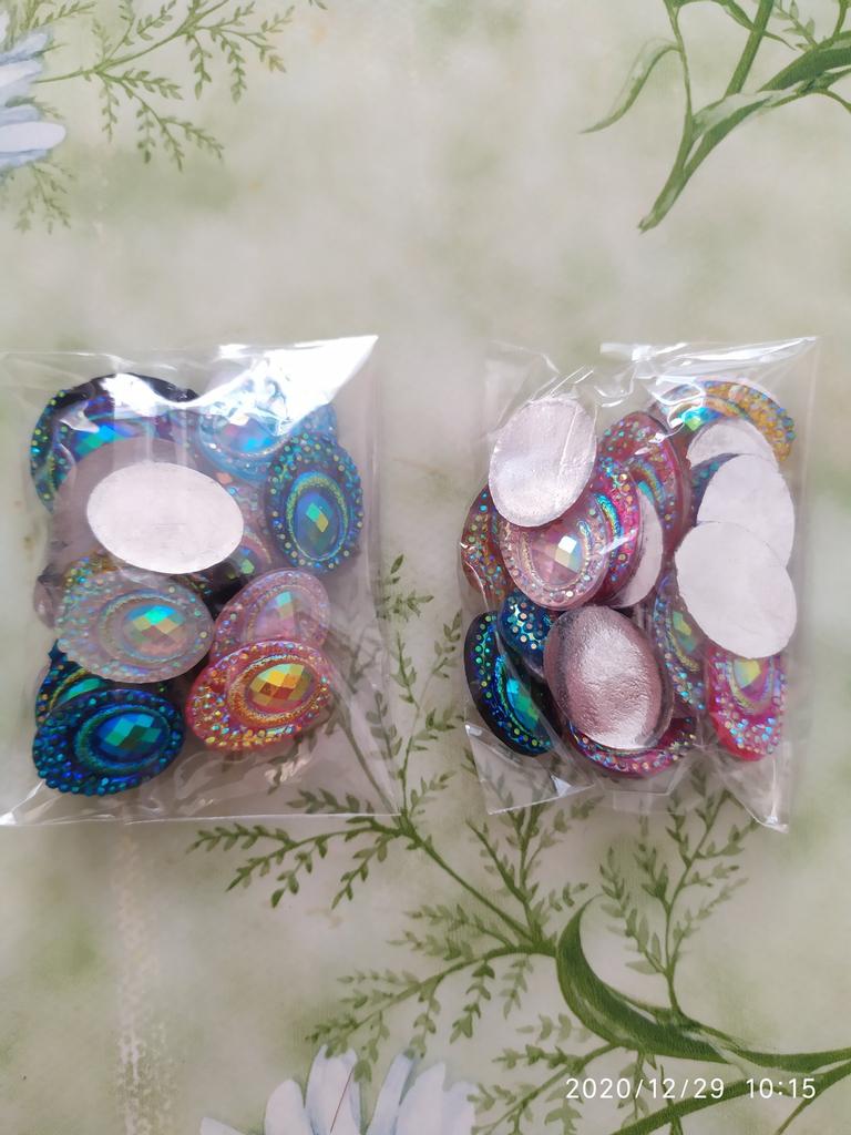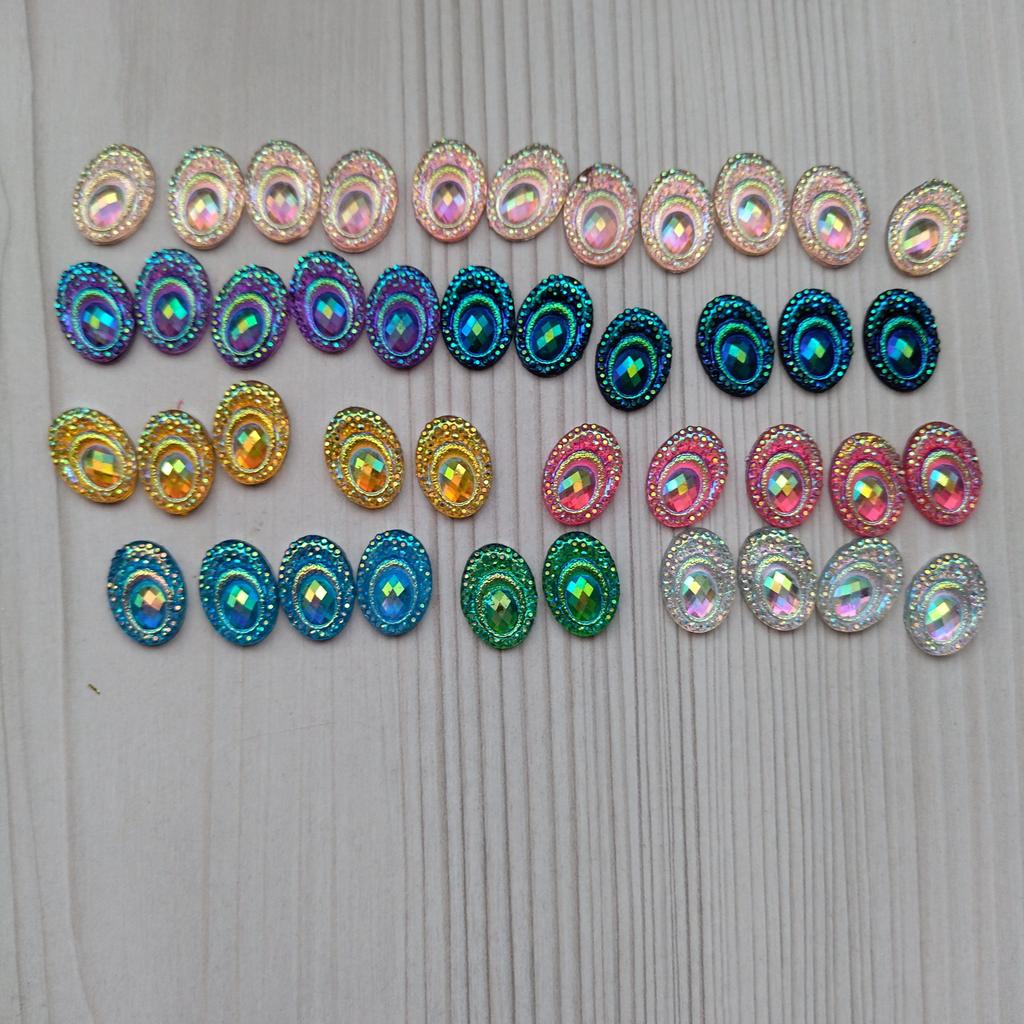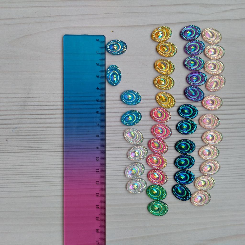 AB Resin Peacock Oval FlatBack Rhinestone Appliques/wedding DIY Craft 40pcs 13mm*18mm