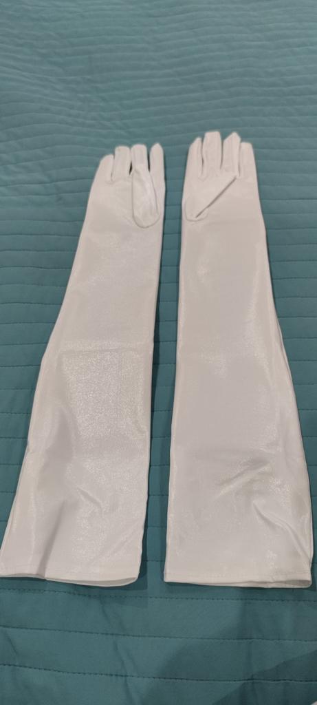 🧤 Long gloves 🧤 The long gloves were delivered well packaged after a delivery time of 3 weeks. The finger area was filled with cardboard to keep its shape during delivery. 🧤 The gloves are one size, which fits me very well. I have long fingers and usually wear size 7.5 to 8 gloves. My fingers fit perfectly in the gloves. In the upper arm area there would even be room for slightly stronger upper arms. The length of the entire glove is optimal. 🧤 These are not latex gloves, as stated in the description, but shiny fabric. The gloves are slightly stretchy. 🧤 These long gloves can be optimally combined with an elegant piece of clothing, but can also be combined very well with lingerie. 🧤 The quality is great and so is the processing of the material!