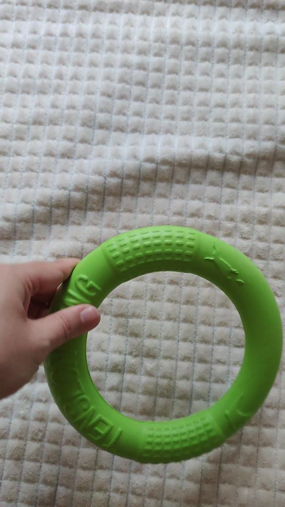 An excellent bagel, elastic, chewy :) It stinks a little, but I think it will dissipate over time. The dog is delighted! I took it for walks instead of a ball. I have nowhere to put the ball, but this donut can be put on my hand and carried with me, it’s convenient.