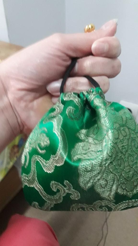 Cute little bag. Just for my malachite bracelet. Thank you.