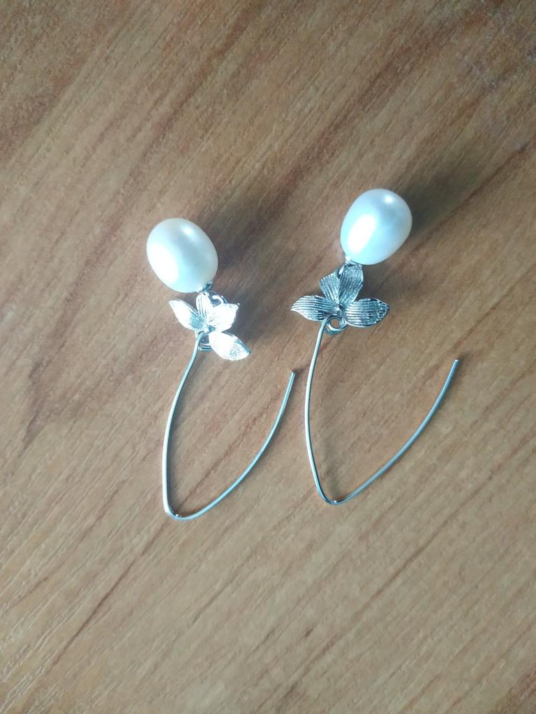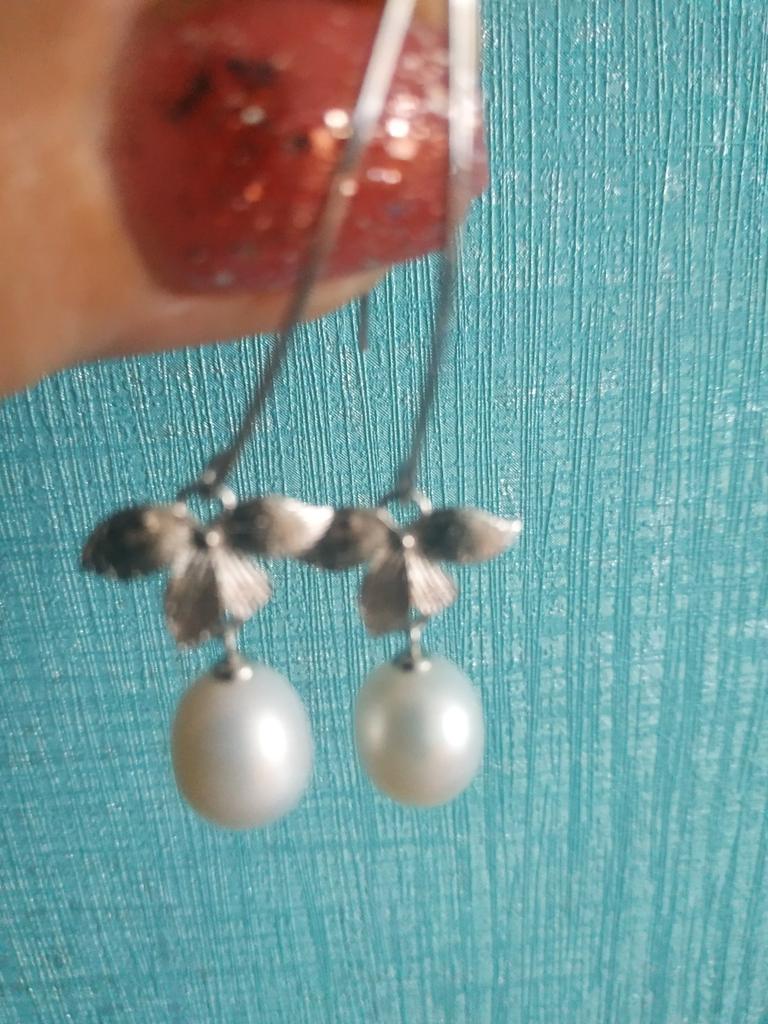 LSOOYH Boho Natural Freshwater Pearl Earrings For Women Fashion Leaf Long Earrings Pearl Jewelry