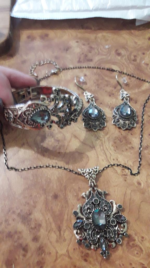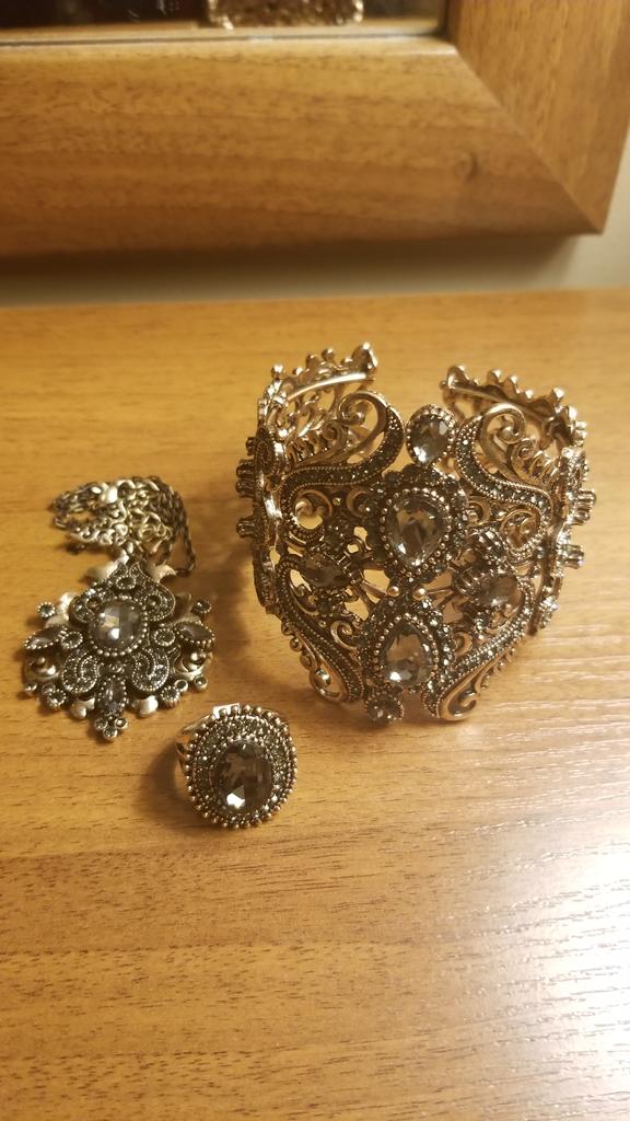 I ordered a ring and a bracelet earlier. This is already the third order for the set))) The central stone is not fixed evenly. I recommend buying only for yourself, because I would be ashamed to give it to someone. But the products look good if you don't pay attention to the details and don't look at the reverse side. Outsiders who see it like it, the stones sparkle beautifully, the metal looks good.
