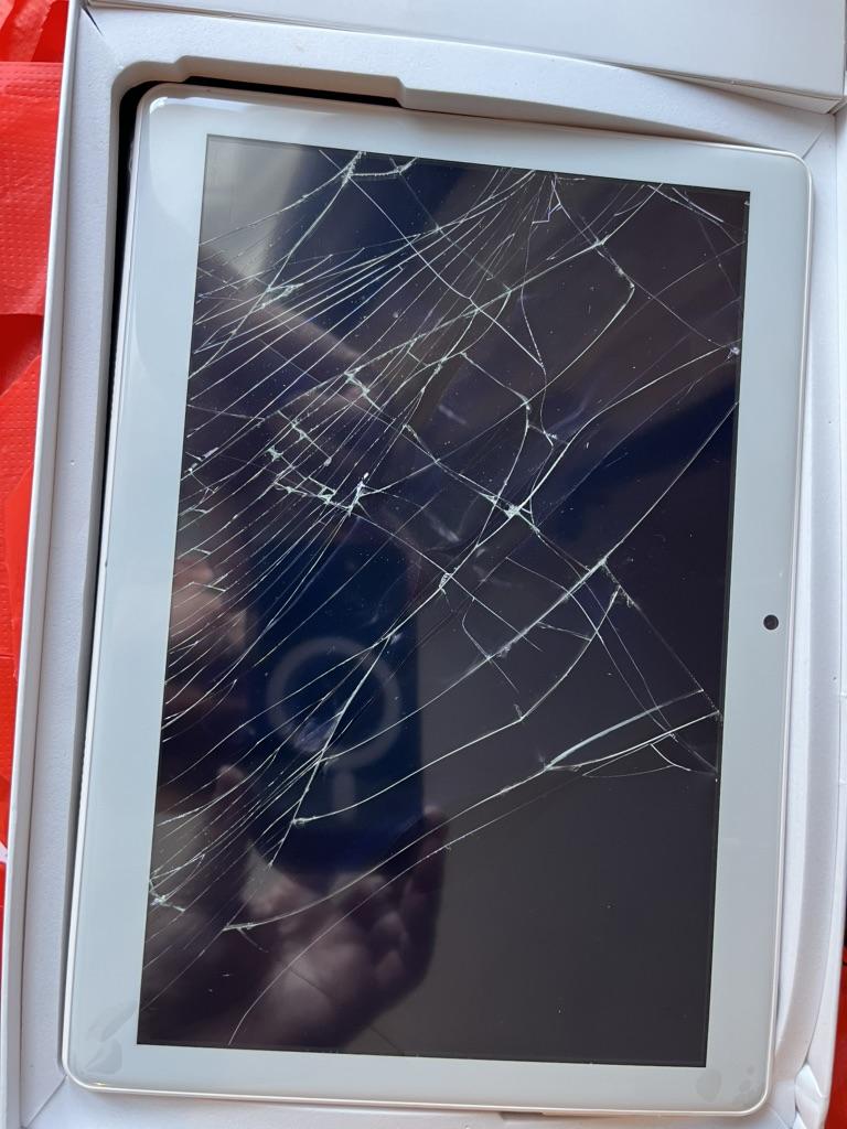 The box arrived dented. Inside the tablet is broken, with a broken screen. Please replace, send a new one