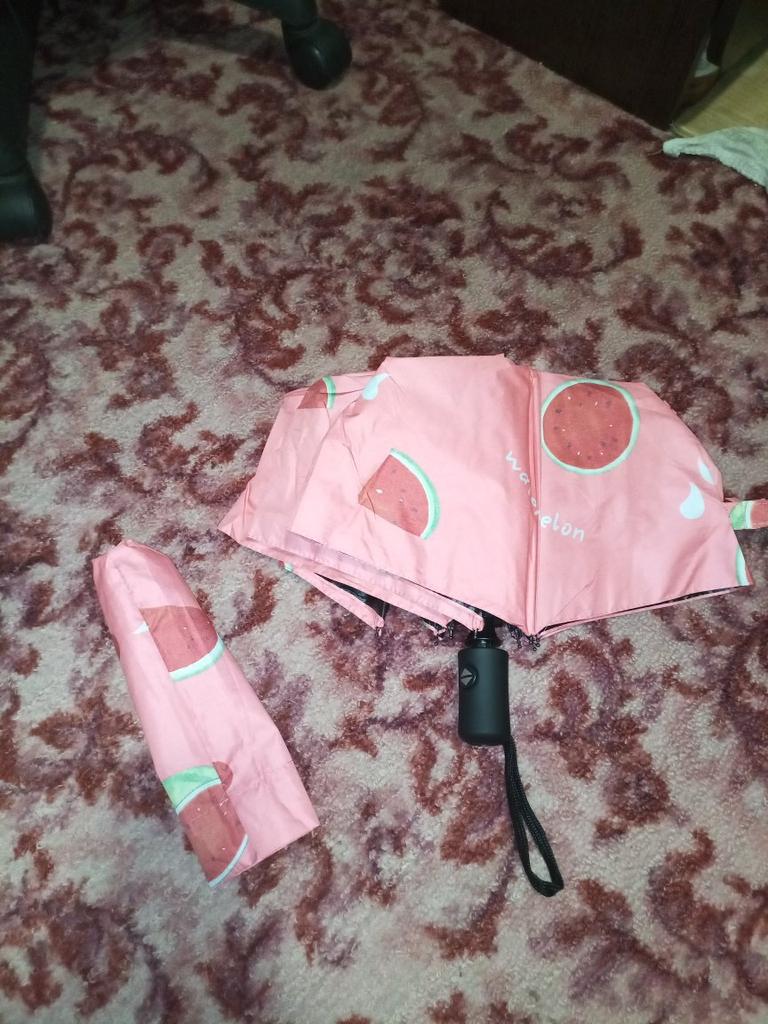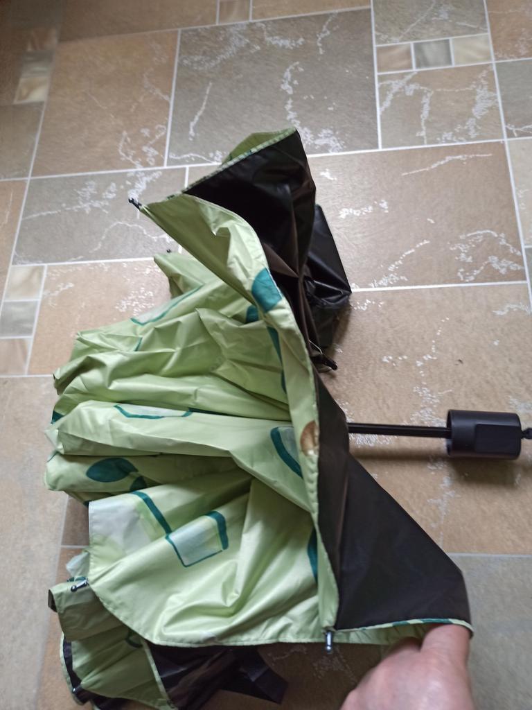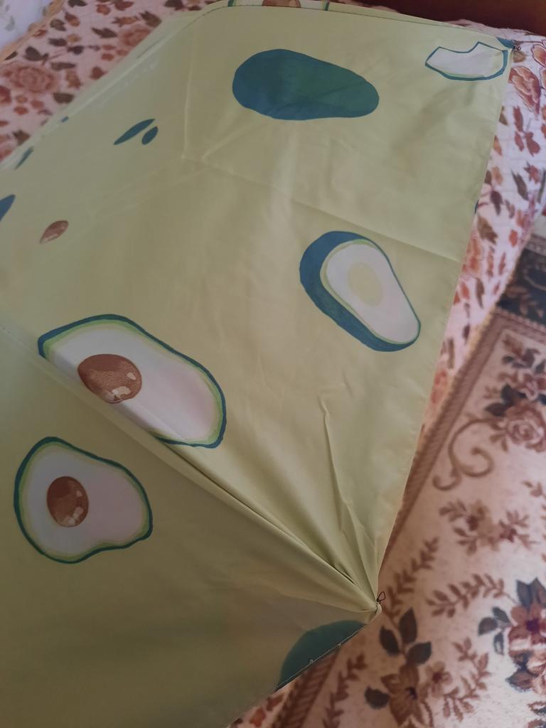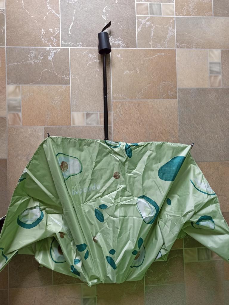 It is a very beautiful, elegant, practical and compact umbrella with a trendy avocado print. It looks just like the picture and I haven't found any disadvantages with it ❤️ The color of the surface is a pleasant light green, and the inner part is covered with black fabric. This part is very important because it protects against UV radiation. That's why I chose this particular umbrella: it protects against both rain and sun. Umbrellas with sun protection are very popular in hot countries with strong sun. I lived in the southern part of China, and there all the people used to walk around with these kinds of umbrellas, which is actually very practical and healthy. You are not exposed to UV radiation, and you don't even need to wear sunglasses 😎 The only thing that some may find uncomfortable is that the umbrella is not very large and therefore not suitable for heavy rain. But otherwise everything is fine 😊