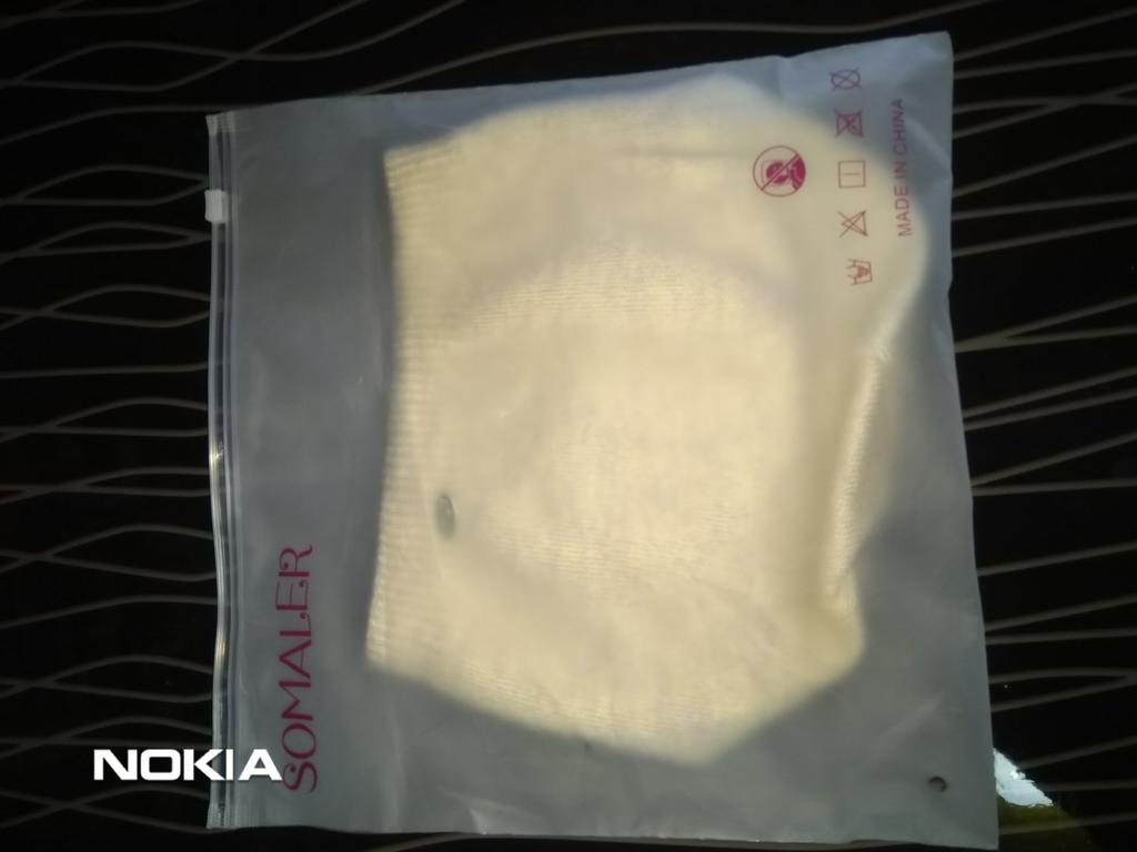 I liked it very much. Beautiful light beige. Qualitatively sewn. The material is soft, pleasant. Even for my already full face of norms.