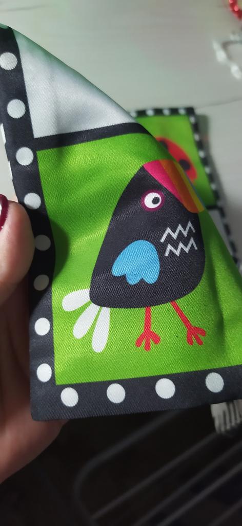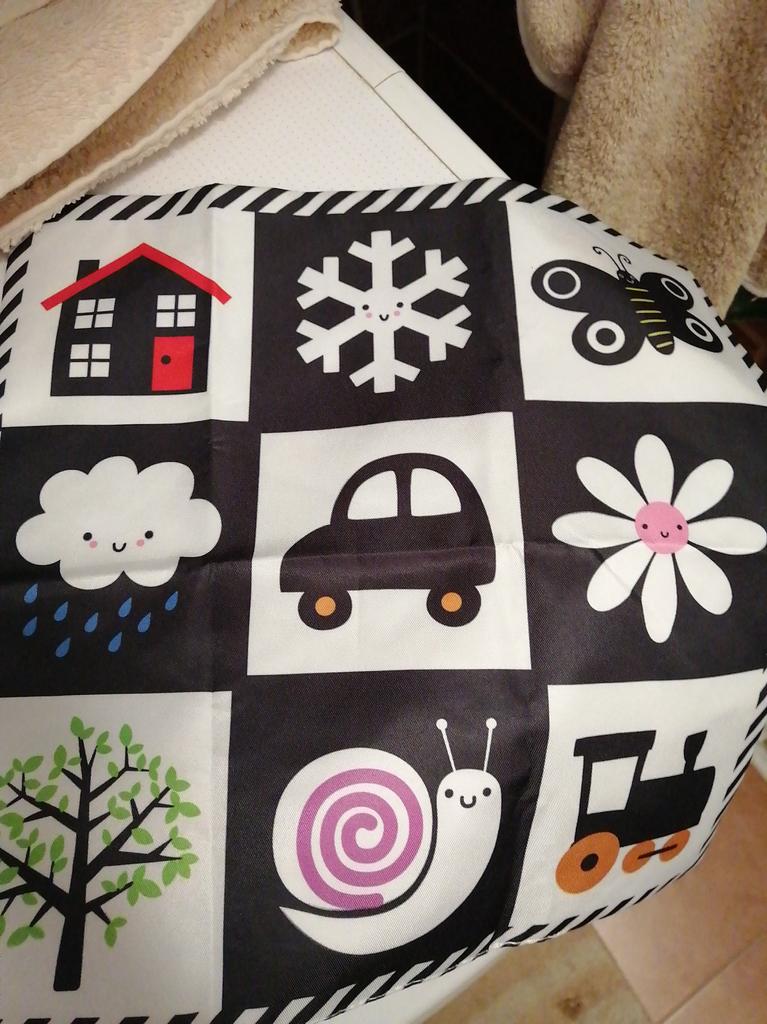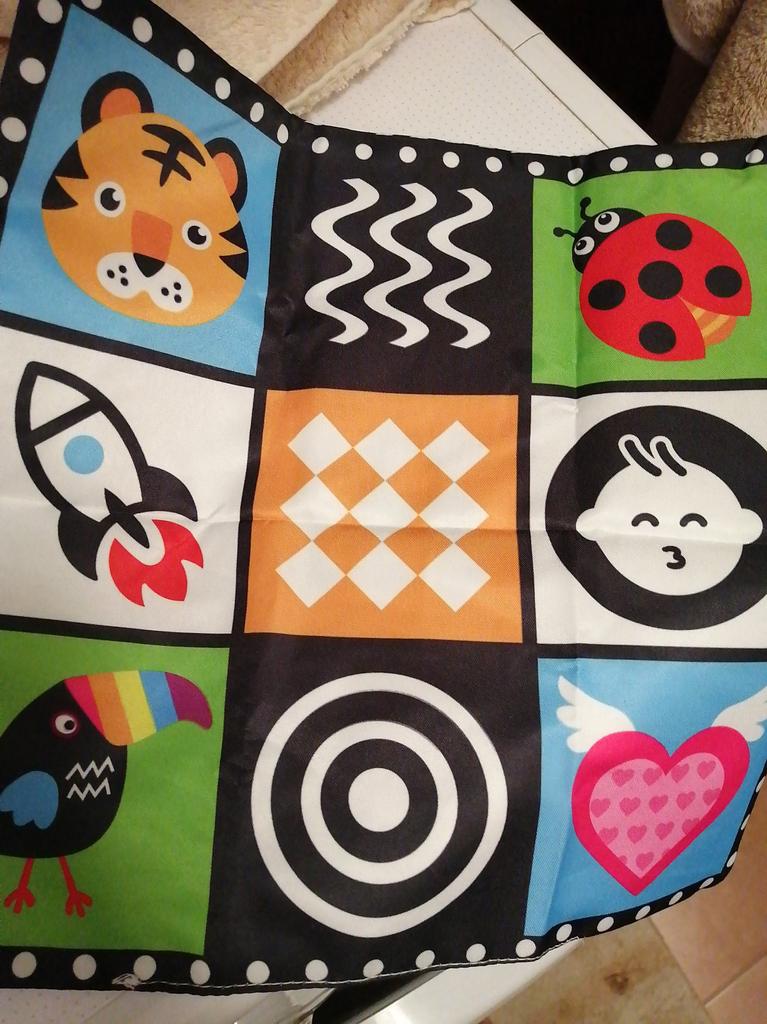 The children's "newspaper" is wonderful: it rustles, the picture is clear, contrasting. Immediately attracted the attention of the child. Mine was 2.5 months old when it arrived, the baby liked it, I let it "read". We are satisfied. Thanks Jum