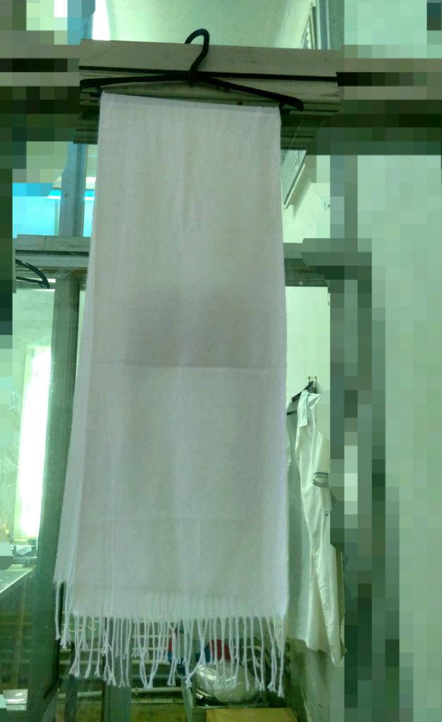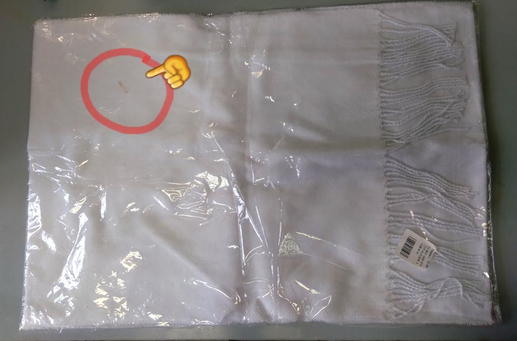 The scarf is not pure white, but white-gray.