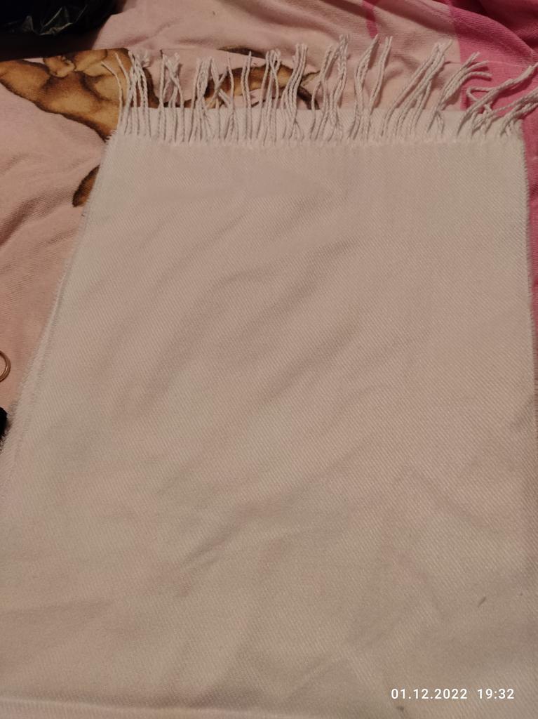 The item arrived damaged with a hole and the edges of the scarf are not finished, so the threads are coming loose.