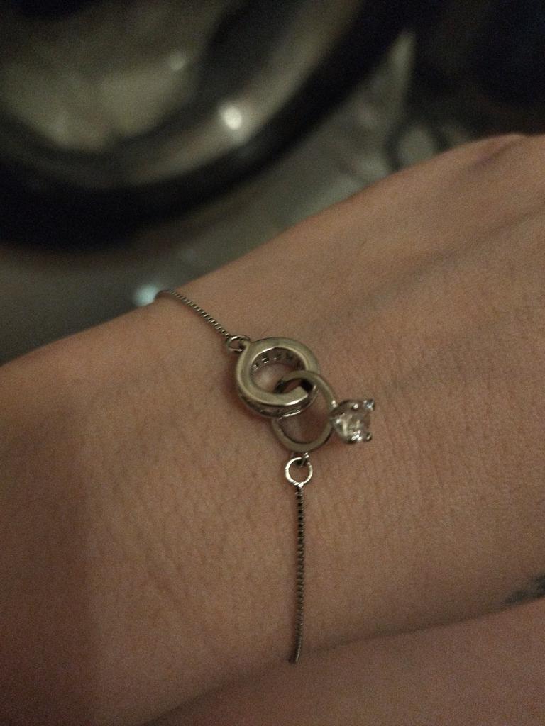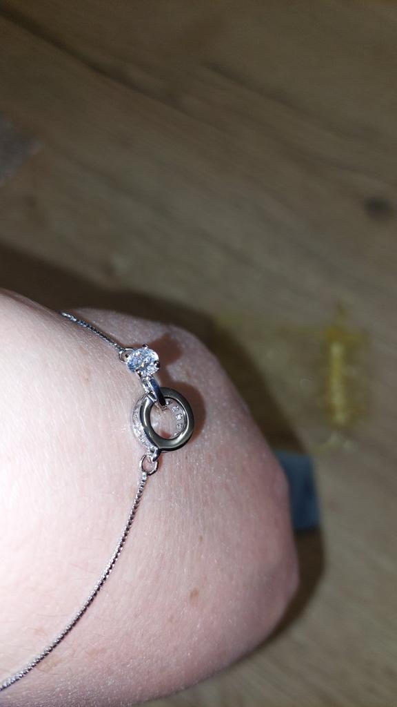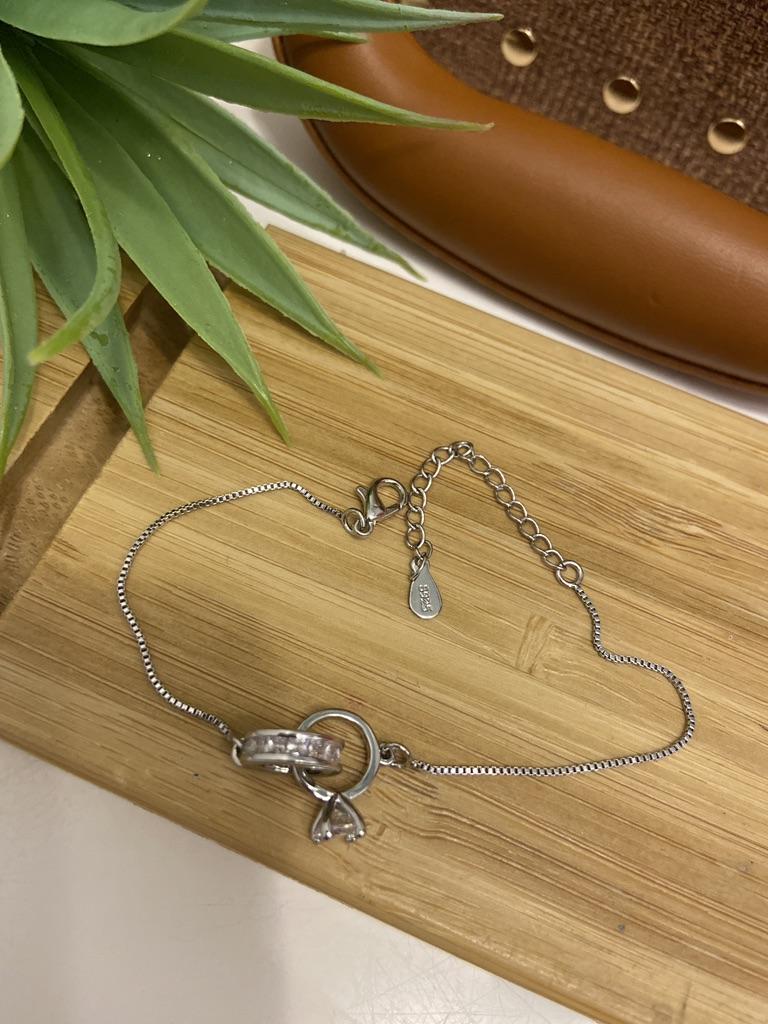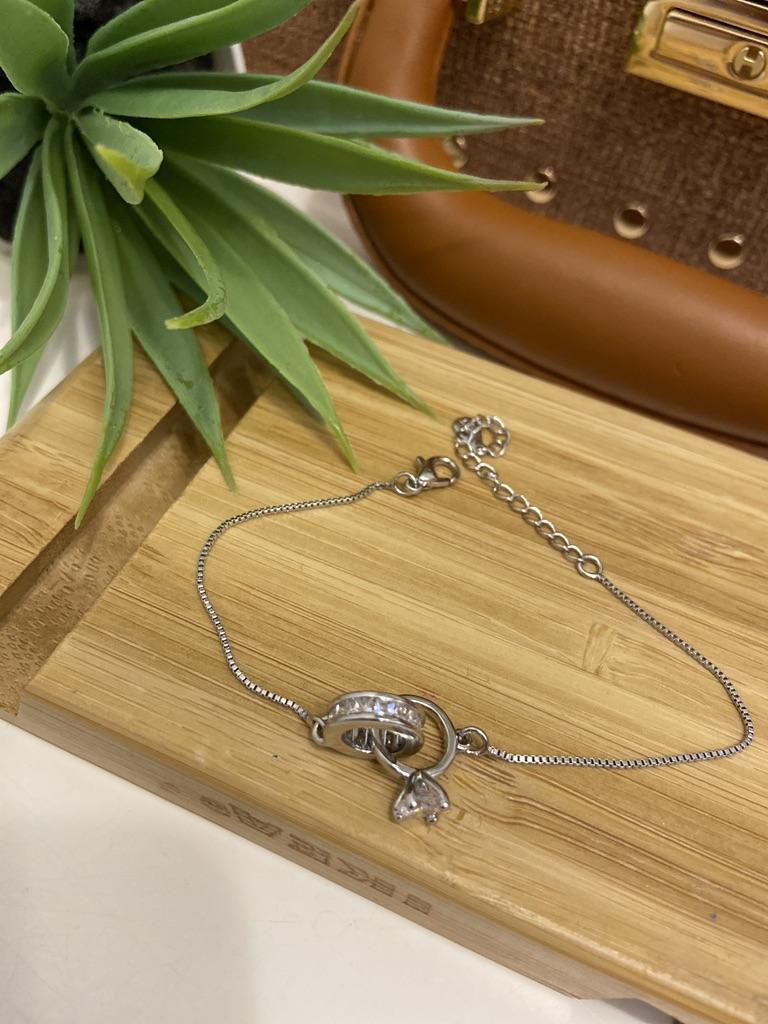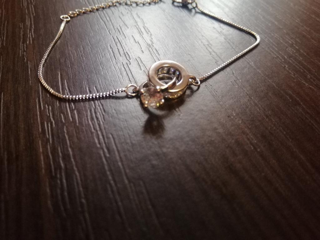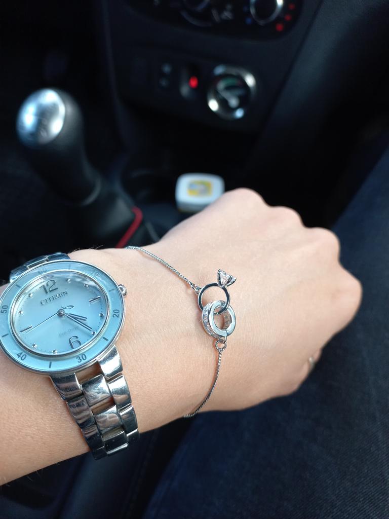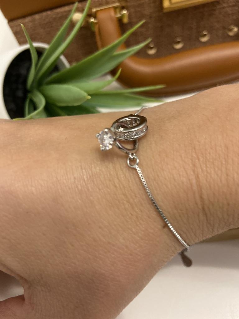 Silver bracelet from Lindon. It looks like a piece of jewelry, the length is adjustable, the alloy is zircon and copper. I really liked the pendants in the form of two rings, as if like wedding rings. The bracelet itself is thin and neat. Everyone is satisfied