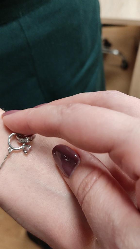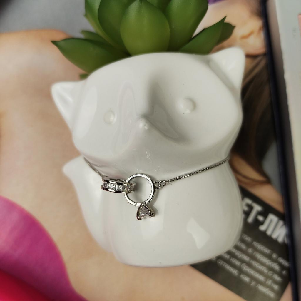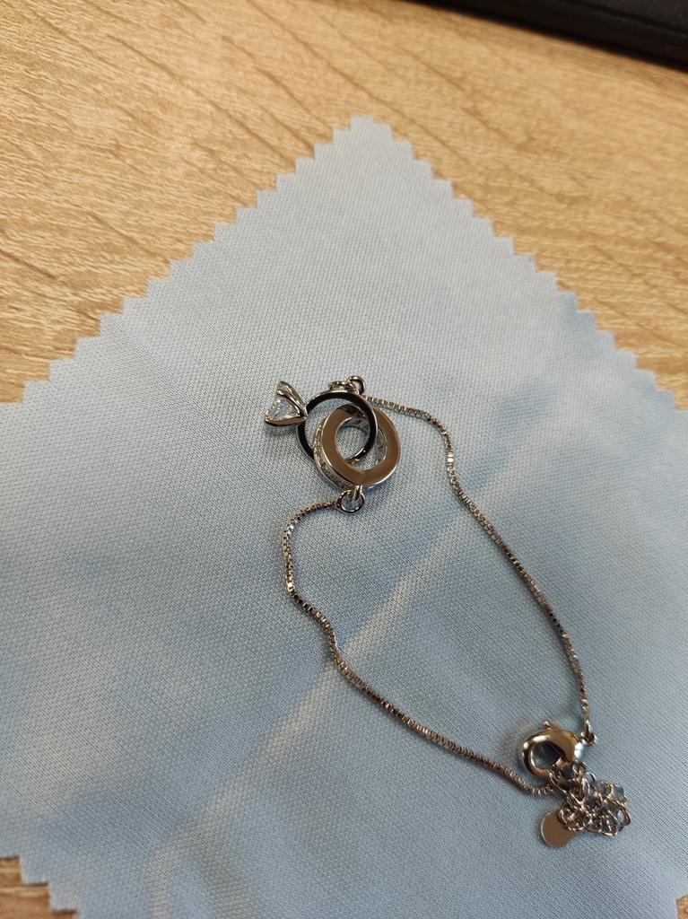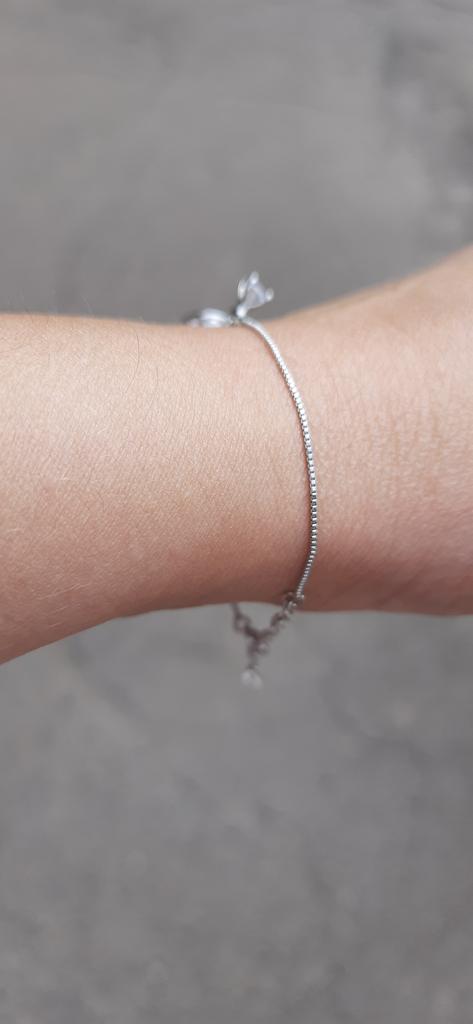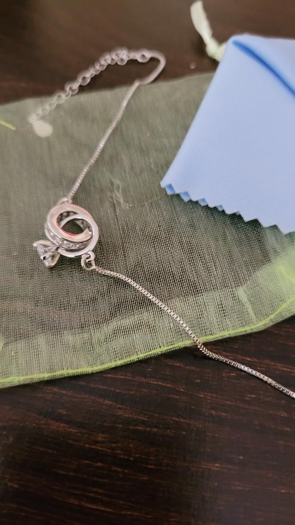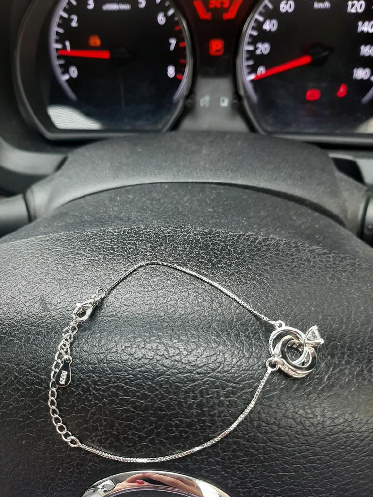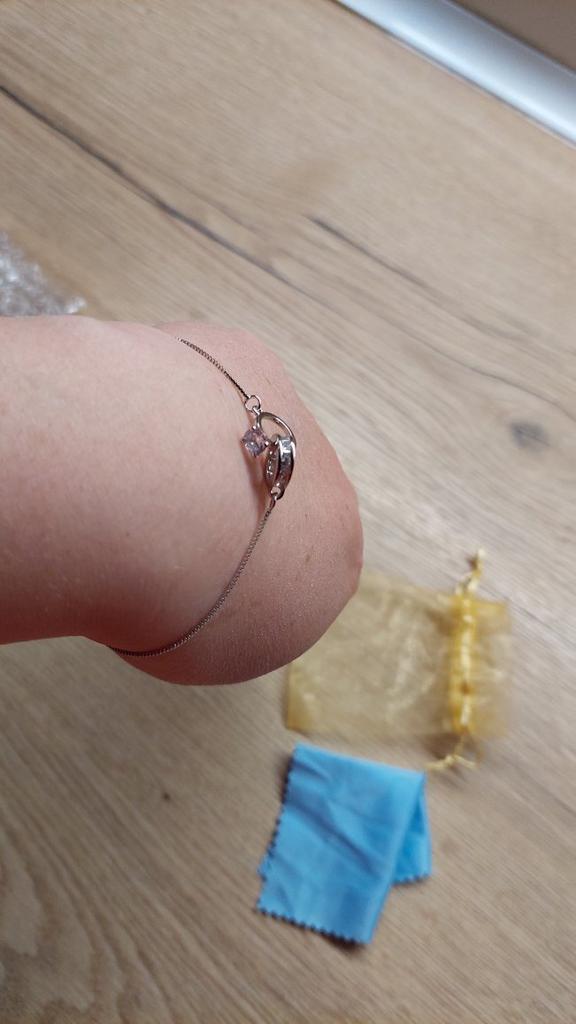 Silver bracelet from Lindon. It looks like a piece of jewelry, the length is adjustable, the alloy is zircon and copper. I really liked the pendants in the form of two rings, as if like wedding rings. The bracelet itself is thin and neat. Everyone is satisfied