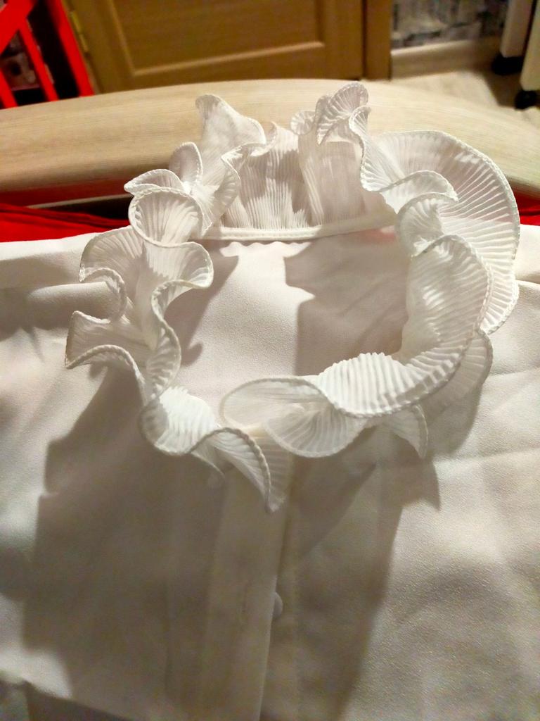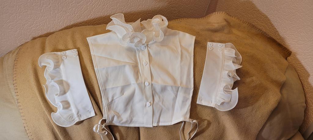 Very high quality workmanship. Elegant bib and cuffs. Will decorate any jumper. Will wear with pleasure. Thank you. I recommend.