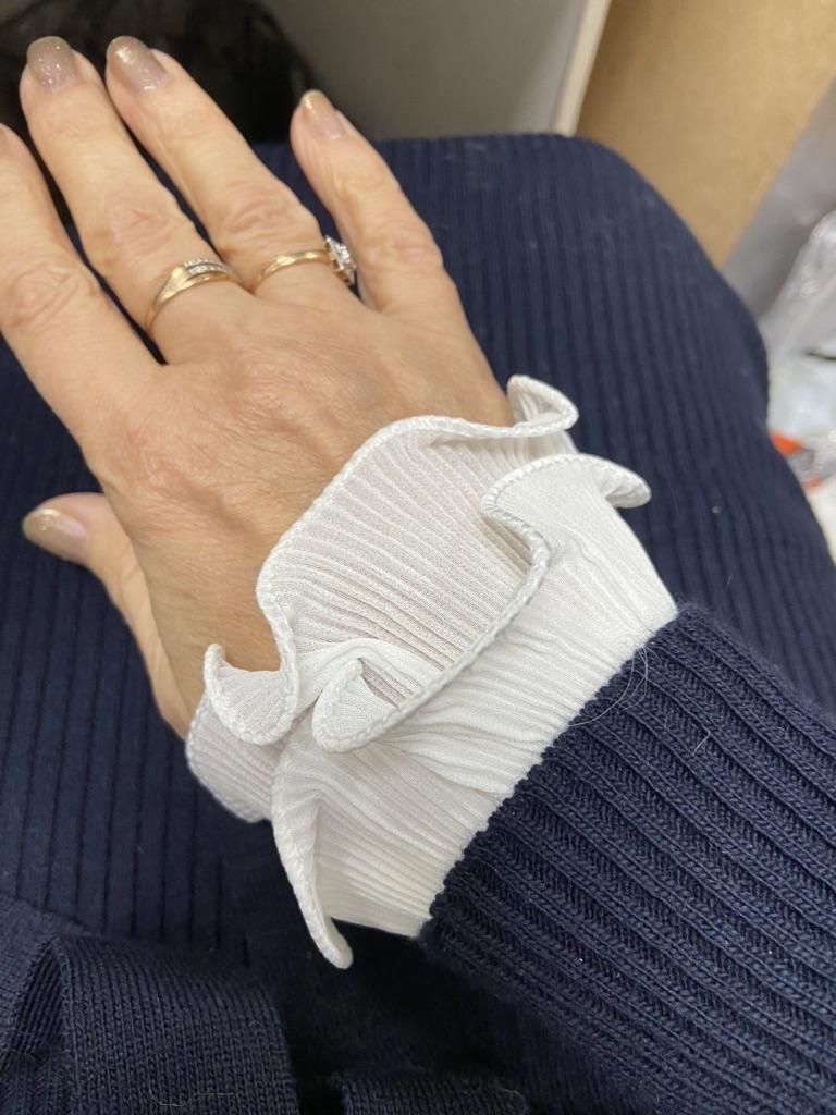 Women 2Pcs Layered Ruffled Stand False Collar with Fake Sleeves Cuffs Wristband Set Button Down Detachable Half Shirt