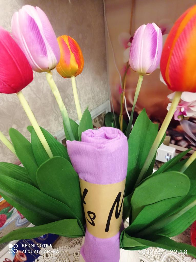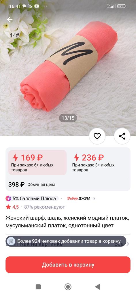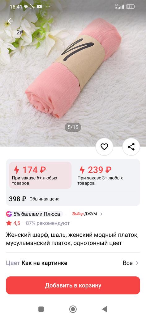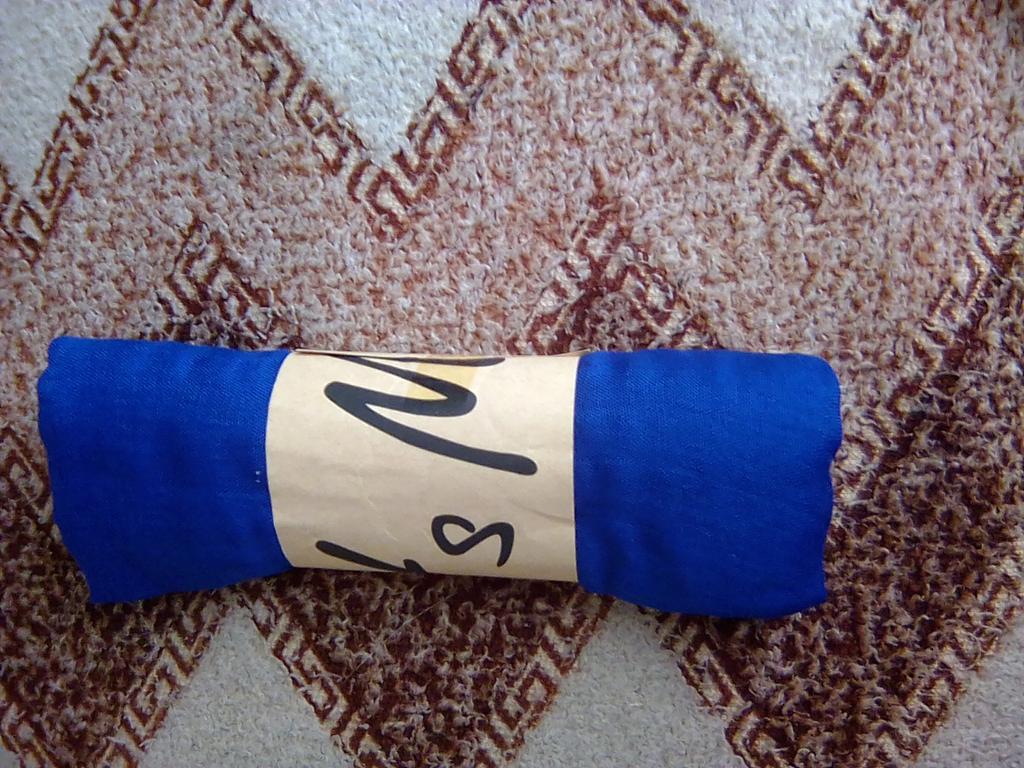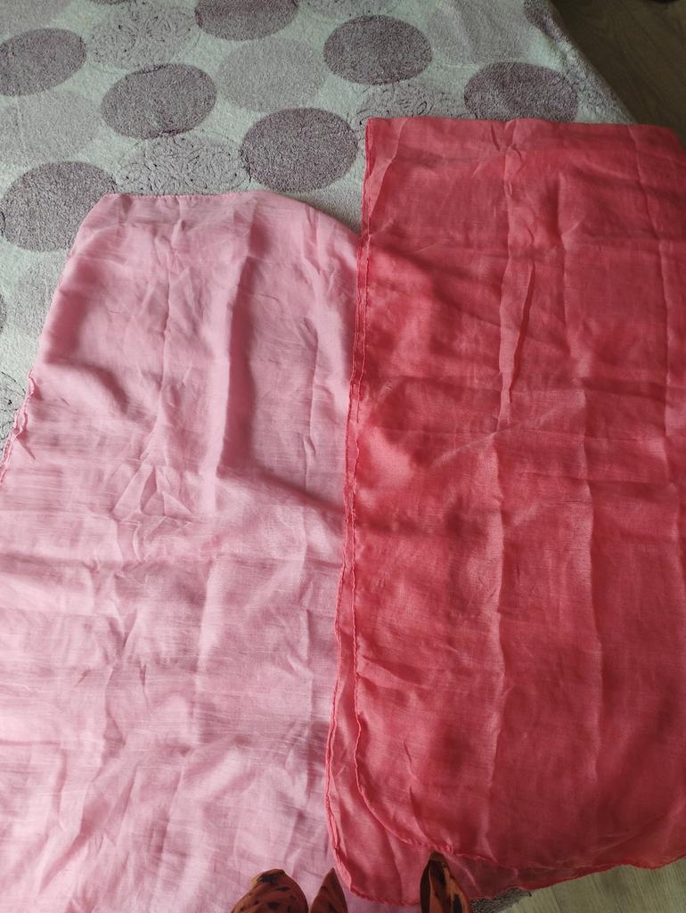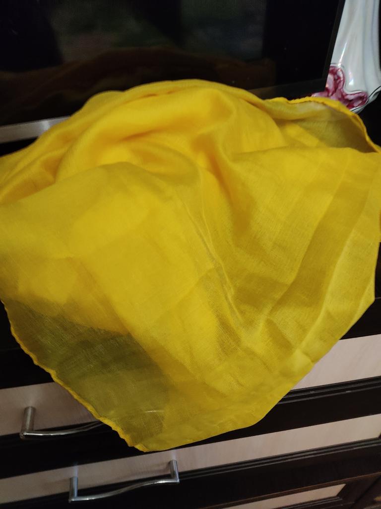 The scarf is not wide - it does not pull on a shawl. The fabric is thin and very pleasant. This is the biggest plus of this scarf. The edge is processed in a strange way - it gathers a little (i.e. the seam is not flat). This is a minus.