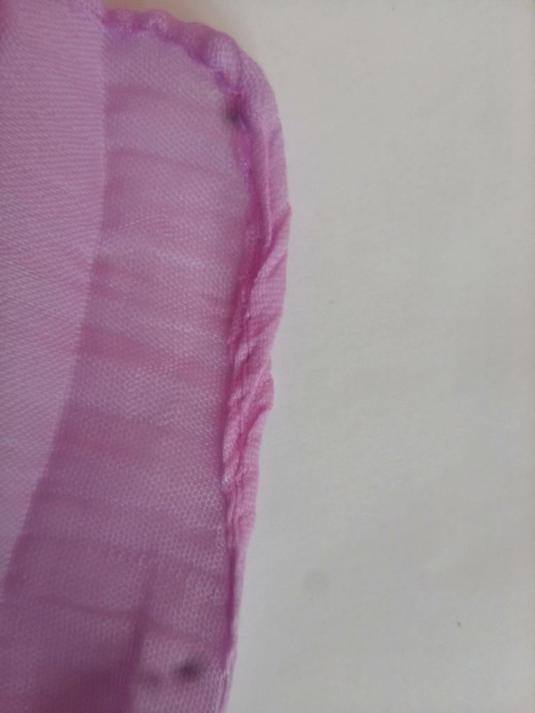 Thin material, requires careful handling. The color of the product is very accurately conveyed in the photo, so I buy it not for the first time when I need a certain shade. But I do not like the quality of the edge processing, especially the corners.