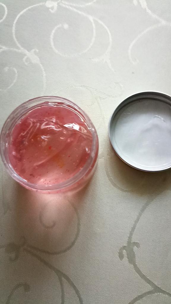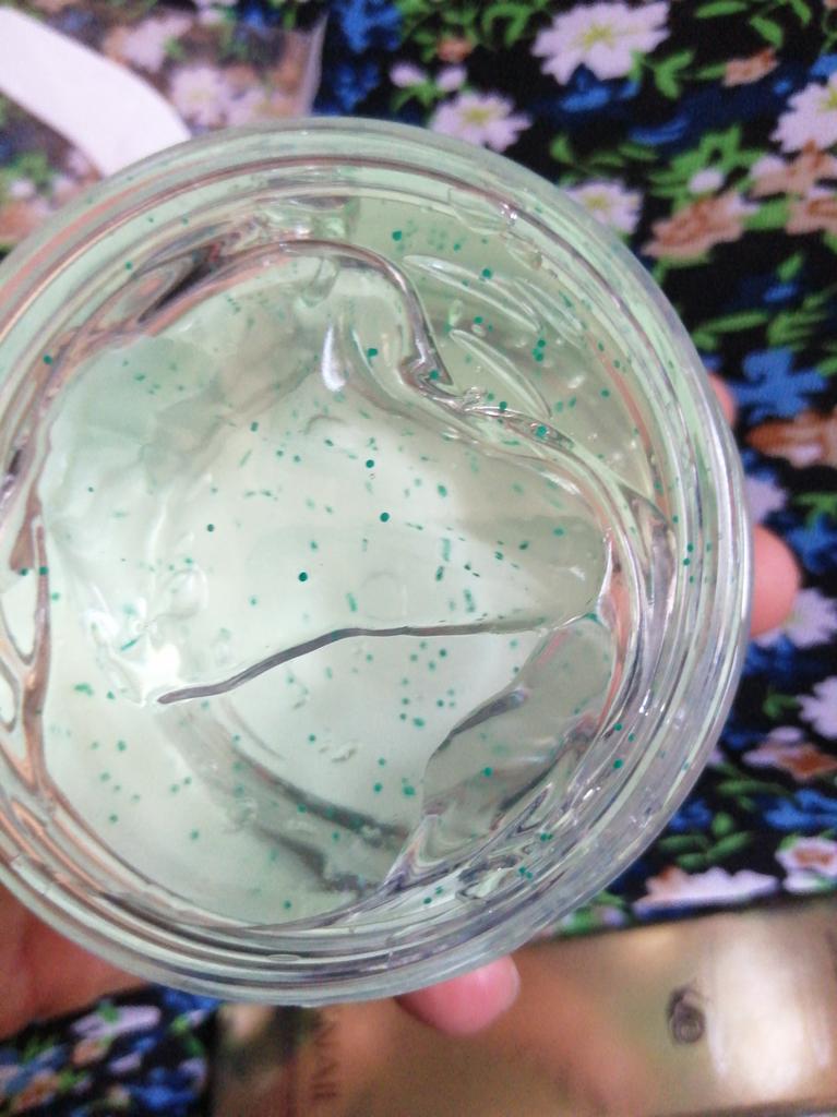 Nice texture, jelly-like. Pleasant feeling on the skin.