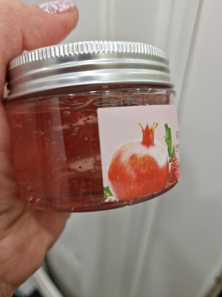 Smells good of pomegranate, absorbs relatively quickly without sticking. Skin feels very soft afterwards 👍