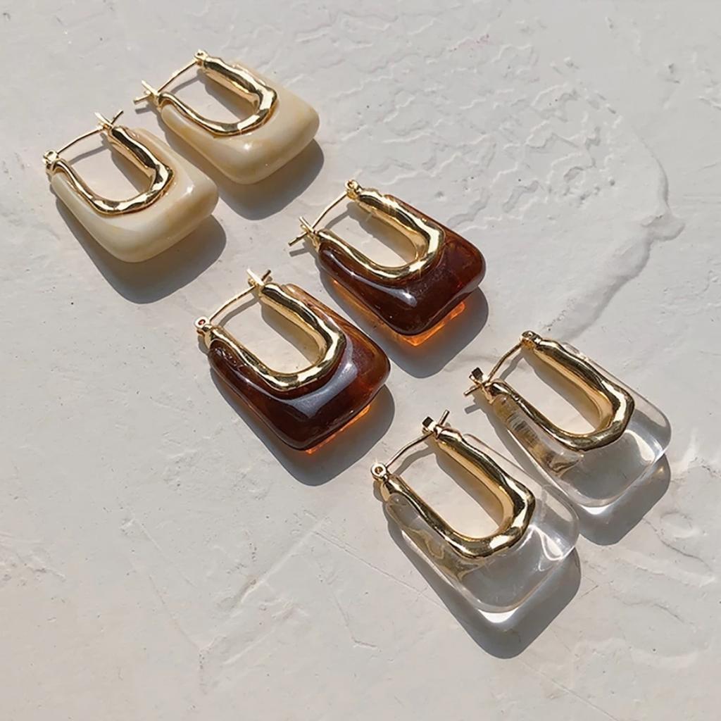 Vintage Transparent Resin Geometric Irregular U-shaped Hoop Earrings for Woman Girl Elegant Colorful Earring Jewelry