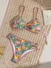Women's Swimsuit Floral Triangle Cup Sexy Backless Bikini Set Swimwear Beachwear Bathing Suits