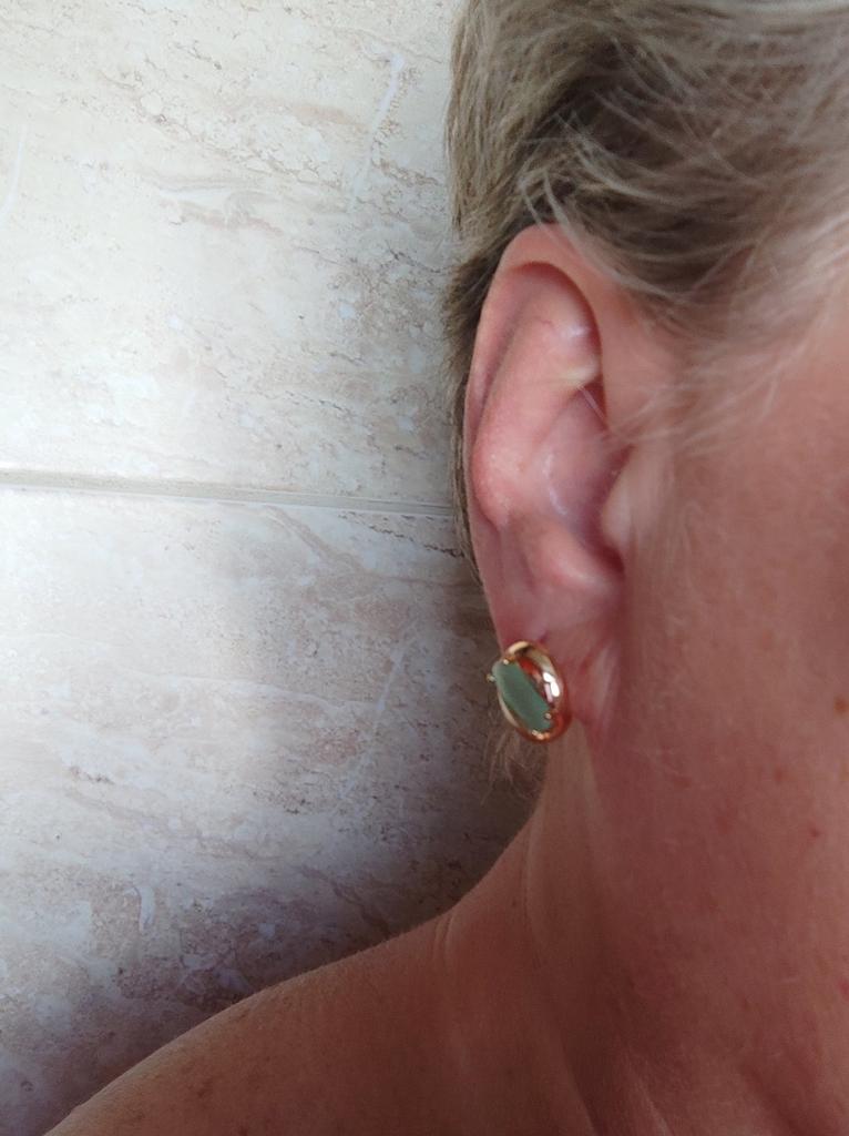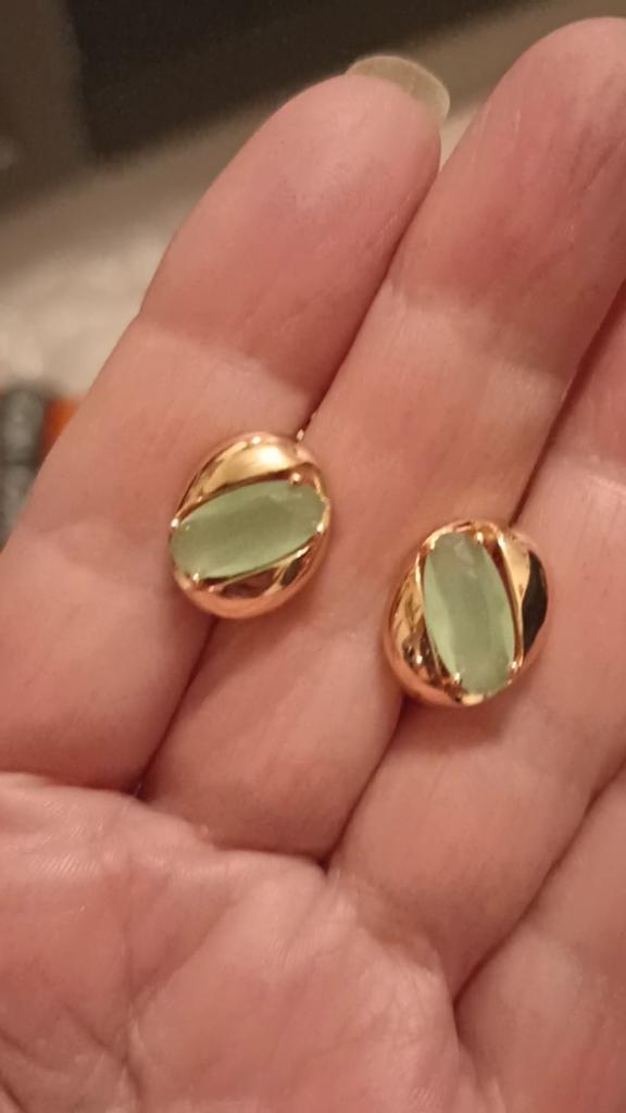 Kinel Cute Round Rose Gold Color Zircon Green Earrings