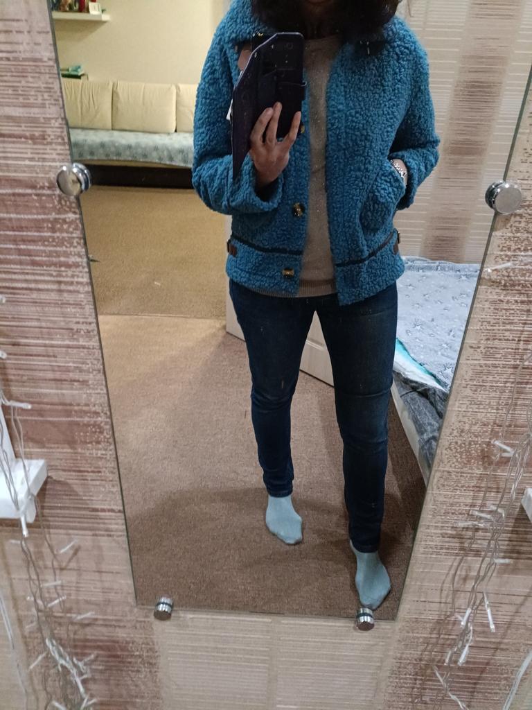The jacket is exactly as described. Nice, warm and really very pretty. I recommend!