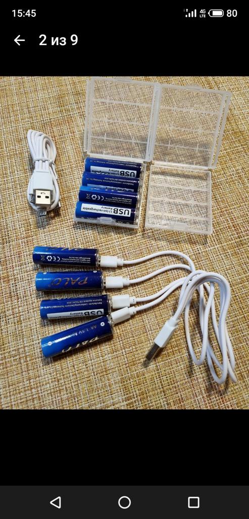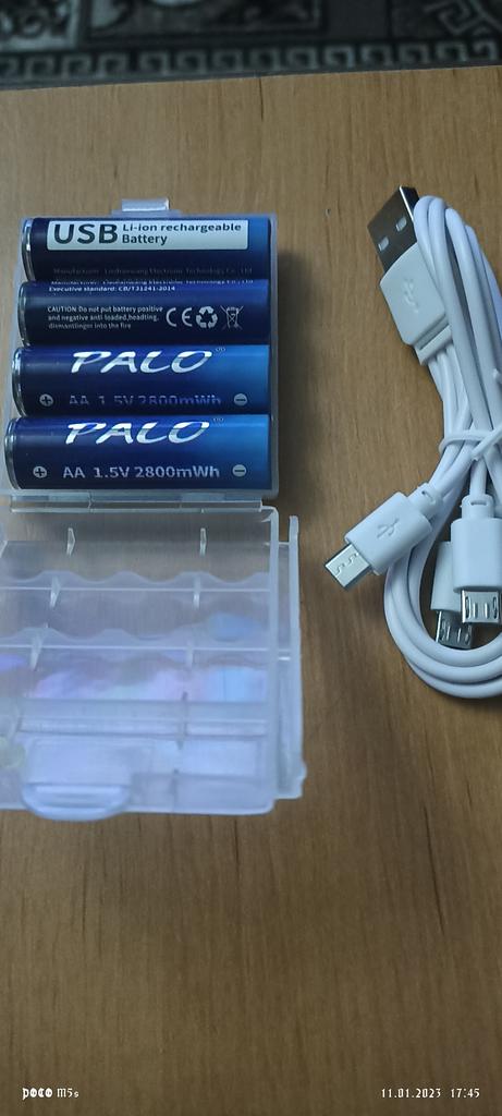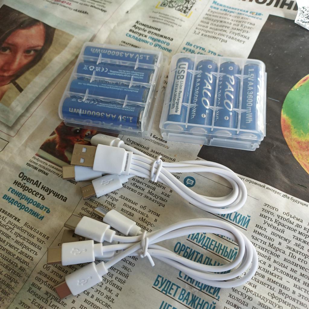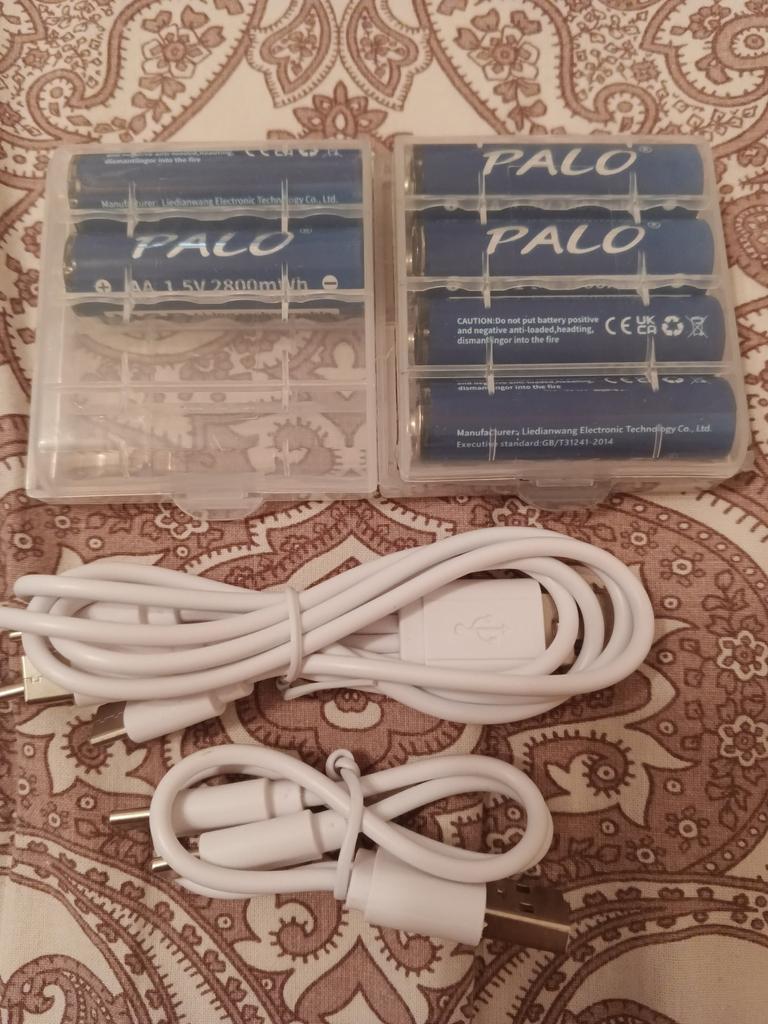 The batteries were delivered quickly, packed in plastic blisters and included charging cables.