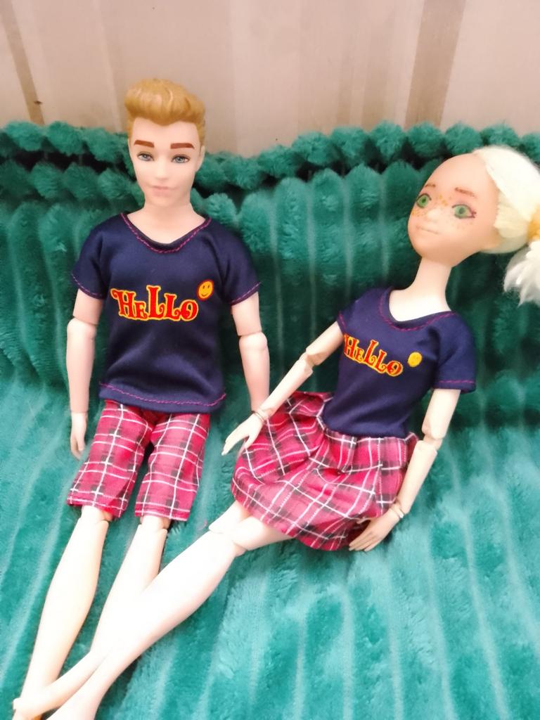 2 Sets Couple Outfits for Ken for Barbie Dolls Doll Accessories Dress Gown Suit T-shirt Shorts 1/6 30cm Dolls House(NO DOLLS)
