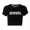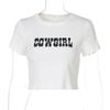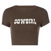 O-Neck Crop Tops Women Summer Fashion COWGIRL Print Casual T Shirts Basic Sexy Streetwear Brown Short Sleeve Picnic Ins
