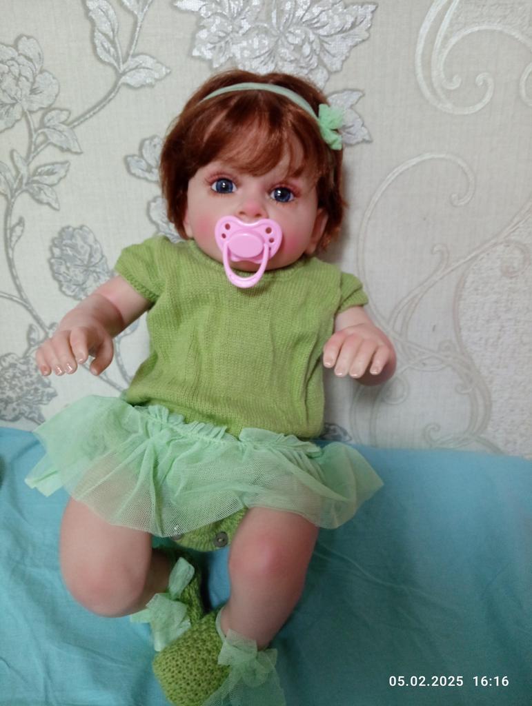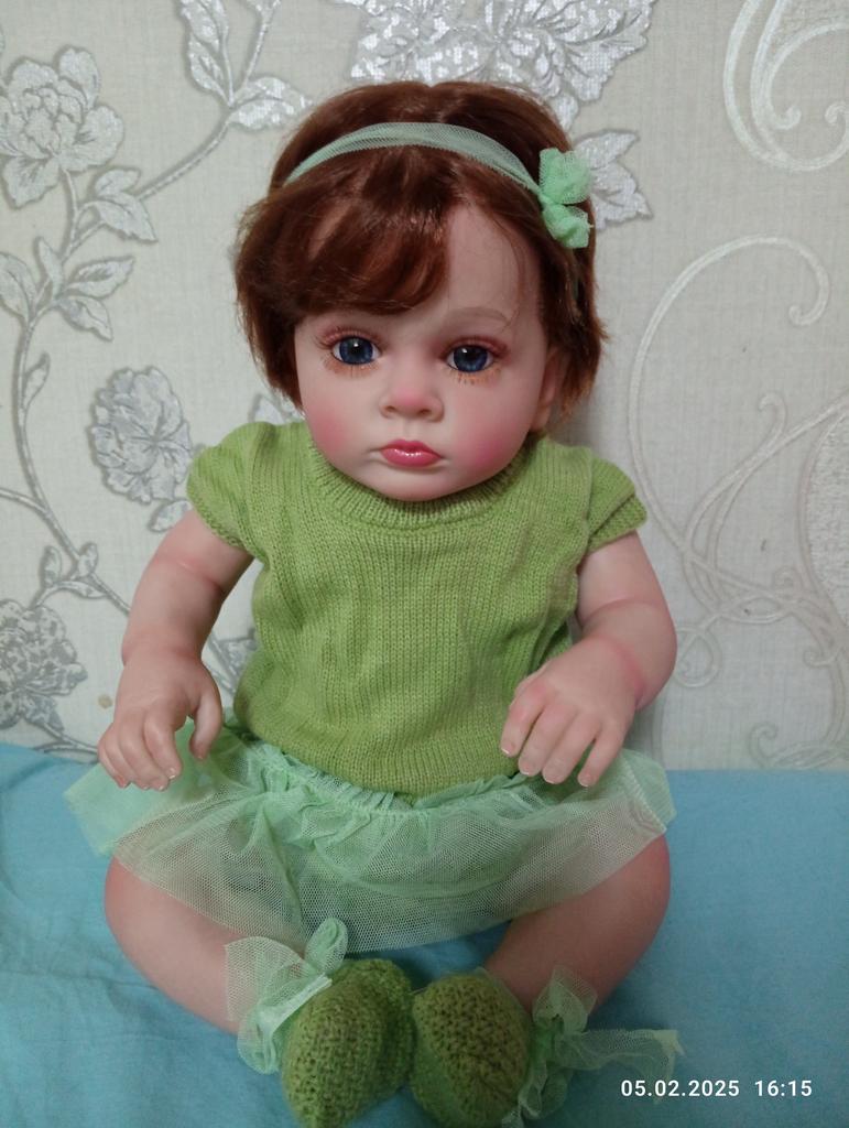 NPK 58cm Reborn Toddler Girl Doll Tutti Cloth Body Hand Paint Doll Green Sweater