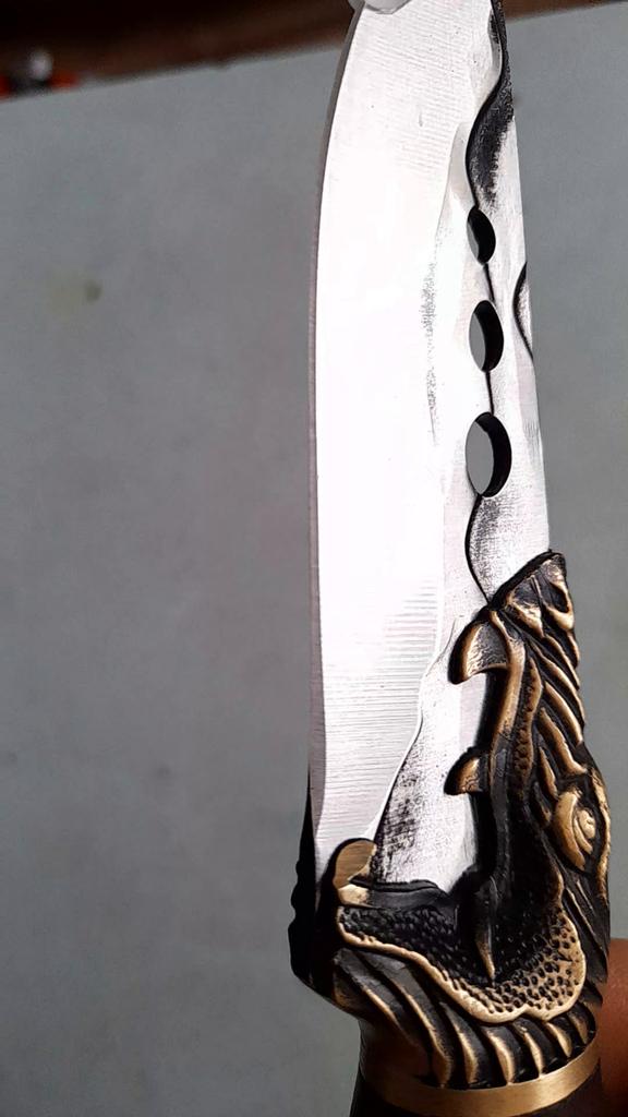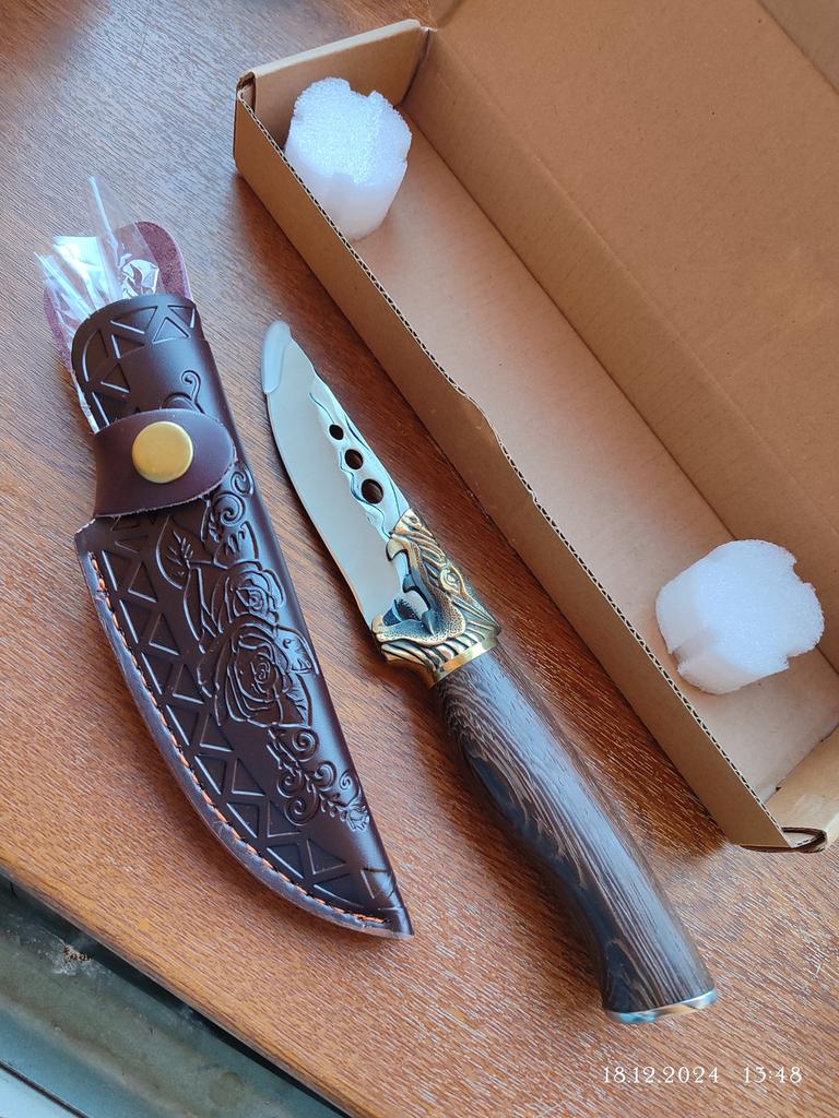 Good day everyone! This review is about a cool knife with tiger head. It is a sharp cutting knife. I bought it to cut vegetables, fish and meat. And because it looks cool 😎 It has exceeded my expectations, because it is a strong and good knife. The item was packed very well! Pros: + good price + perfectly packaged + including holder + excellent quality materials Negatives: - shipping took about 2 months - not for the dishwasher The material is wood and stainless steel. It is of good quality. A good knife for the kitchen at home or to take with you when fishing! I am very happy with the purchase and recommend it to anyone looking for a sharp and handy knife. 👍🏾