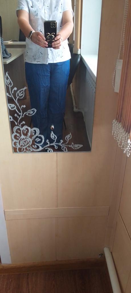 Very NOT beautiful. Unpleasant artificial fabric. Low "crotch". HORROR. Horror! It's impossible to return - it will cost more than the pants themselves. You can't buy sewn items on Joom!!! Part is simply for the trash! DO NOT RECOMMEND to buy!!!!