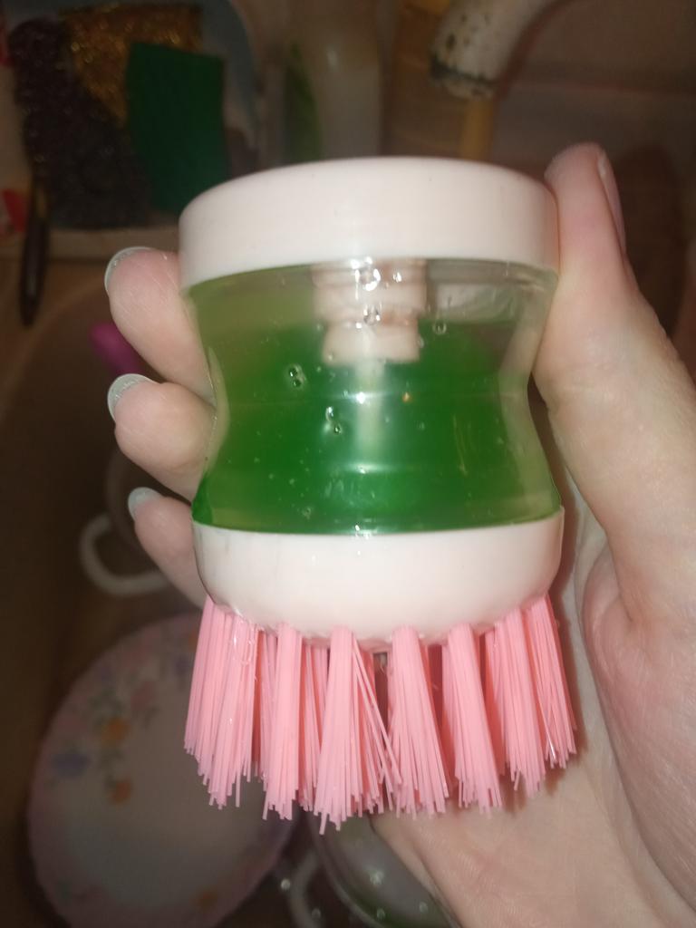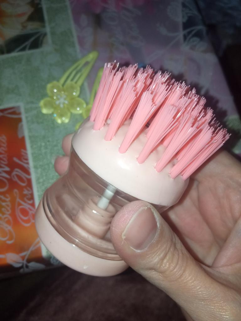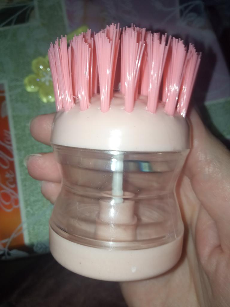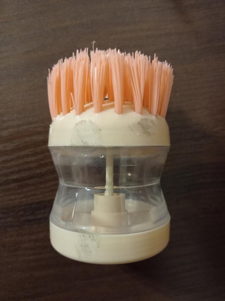 The brush is very hard, it is impossible to wash dishes with it. Plus the washing solution flows.