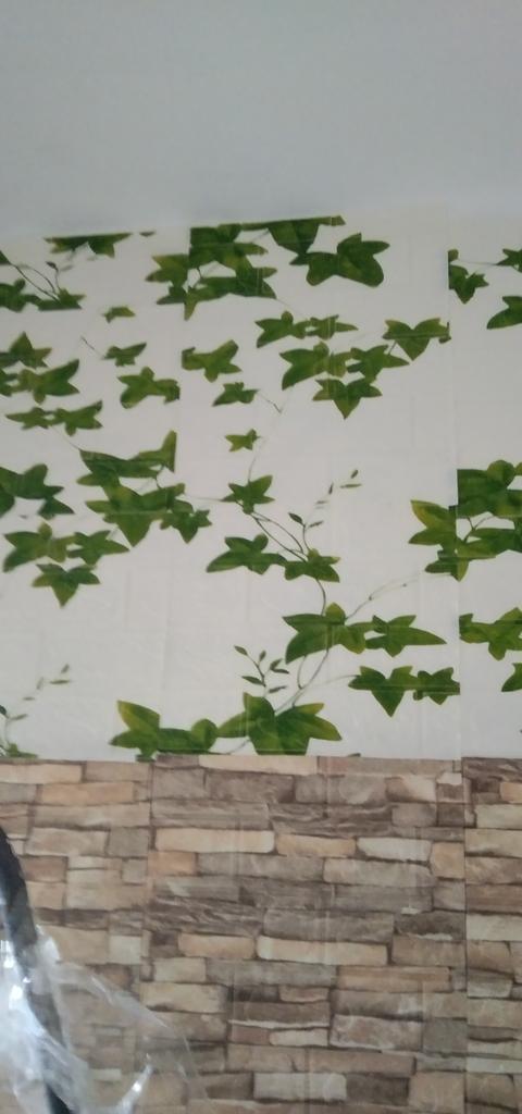 It’s not fitting! 🥴😡 But plasticized so nickel for water, it's very light, very thin, the design is nice, it's in relief so can hide imperfections but will it cover differences in the color of the wall, I don't don't know. It seems very simple to install. but at the joints to see Forget it, unless it ages badly 🥴 I just put them on, they come in different sizes and they stick very, very well. So much so that you can't remove the plastic film 😡 it gets twisted, it risks sticking back on itself, your fingers are full of glue and each plate placed must be cleaned, a horror!! 🥴😡