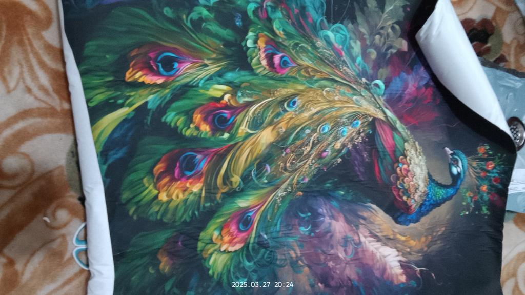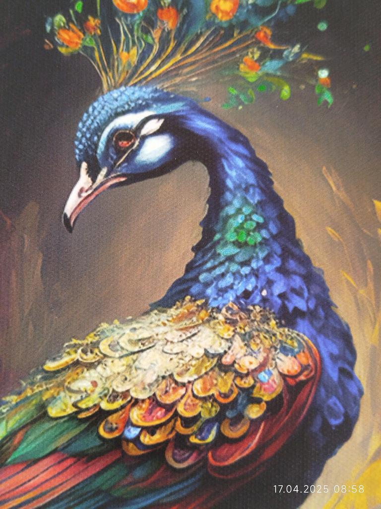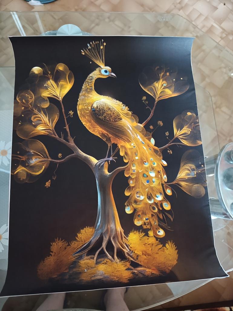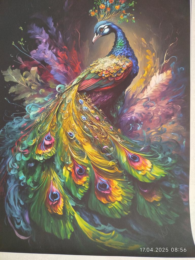 The picture is gorgeous!!! Now I'm waiting for a frame to put on the wall:) it should look like a peacock was painted on the wall. Thank you!!!! Packed very high quality