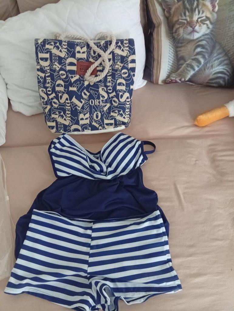 As always, I had to finish the swimsuit for myself... the elastic on the shorts is weak and they are big at 112 cm.. and they will stretch in the water... the bust also had to be taken in in volume... and the inserted cups fixed... the shorts are shorter than in the photo... I would like them to be longer. But you can change them with other black ones... otherwise it is a comfortable two-piece swimsuit. Thank you.