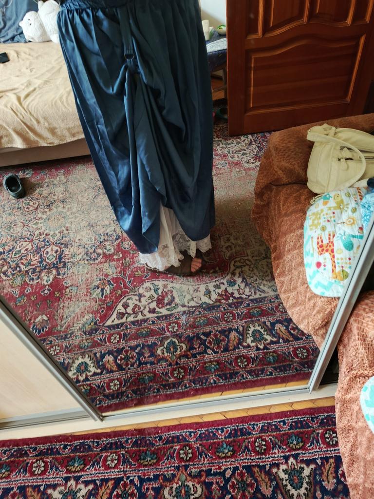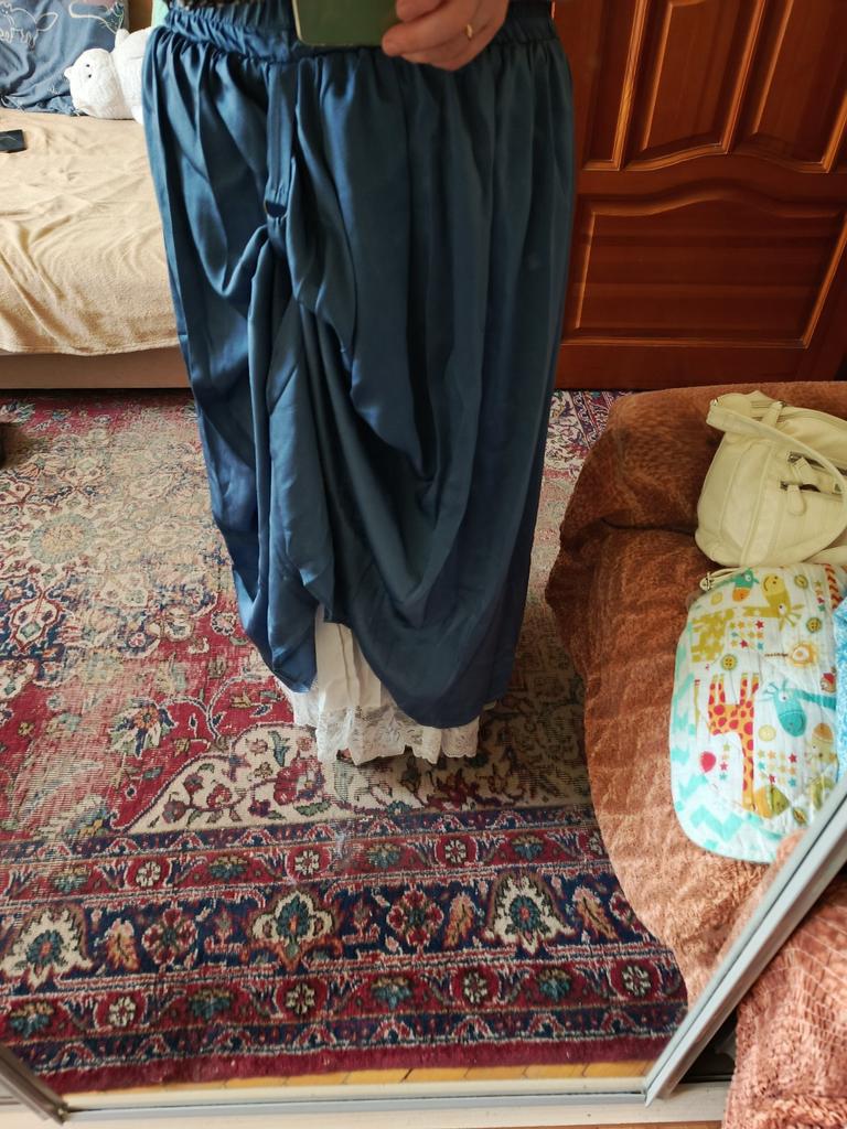 The skirt looks chic, is very comfortable, has a pleasant fabric, the length is ideal - long, but doesn't drag on the ground