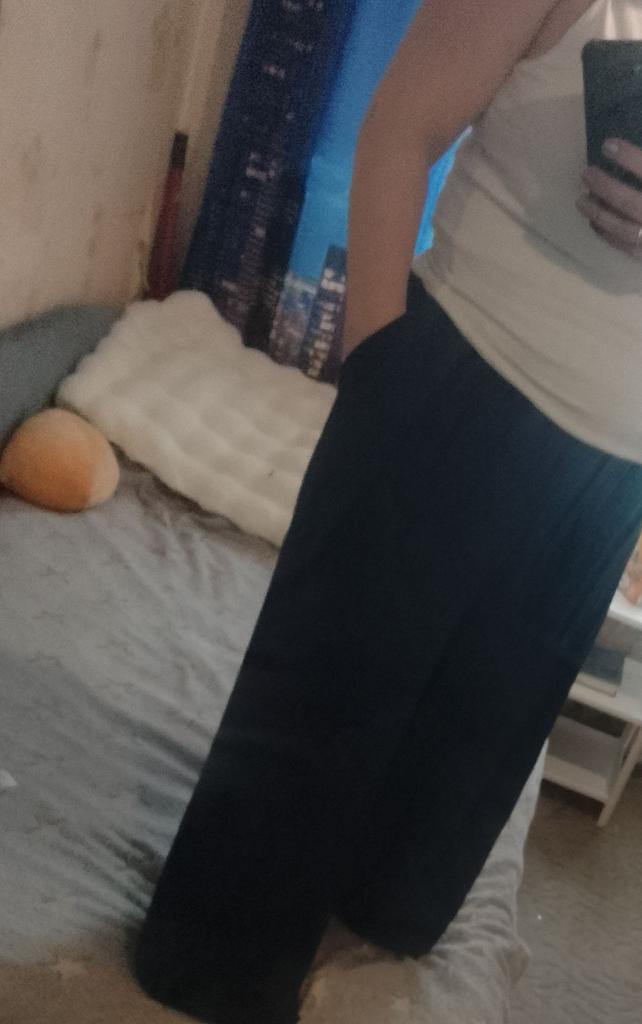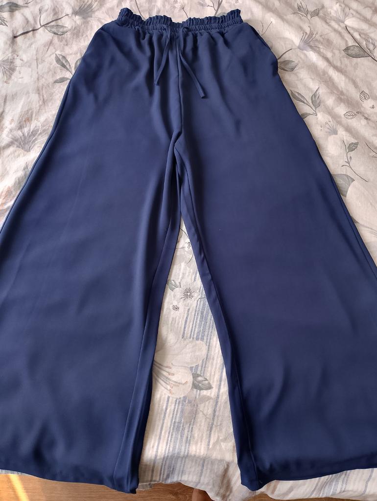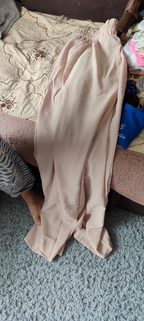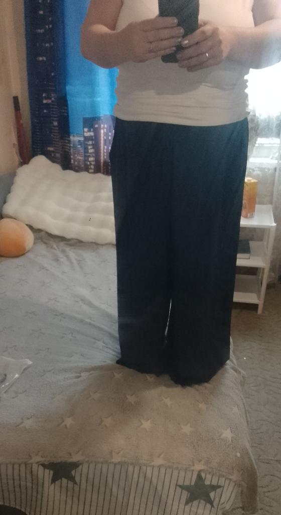 Hello. Today. I went to the post office. and picked up my things. Wide-leg. trousers. are very. good quality. I tried them on. they fit. Someone said. two. pairs of trousers. came. I liked them. I need. to buy a jacket. to wear with them. My things. came early. Thank you to the seller. Good evening. The trousers. were long. I hemmed them. Summer. very.