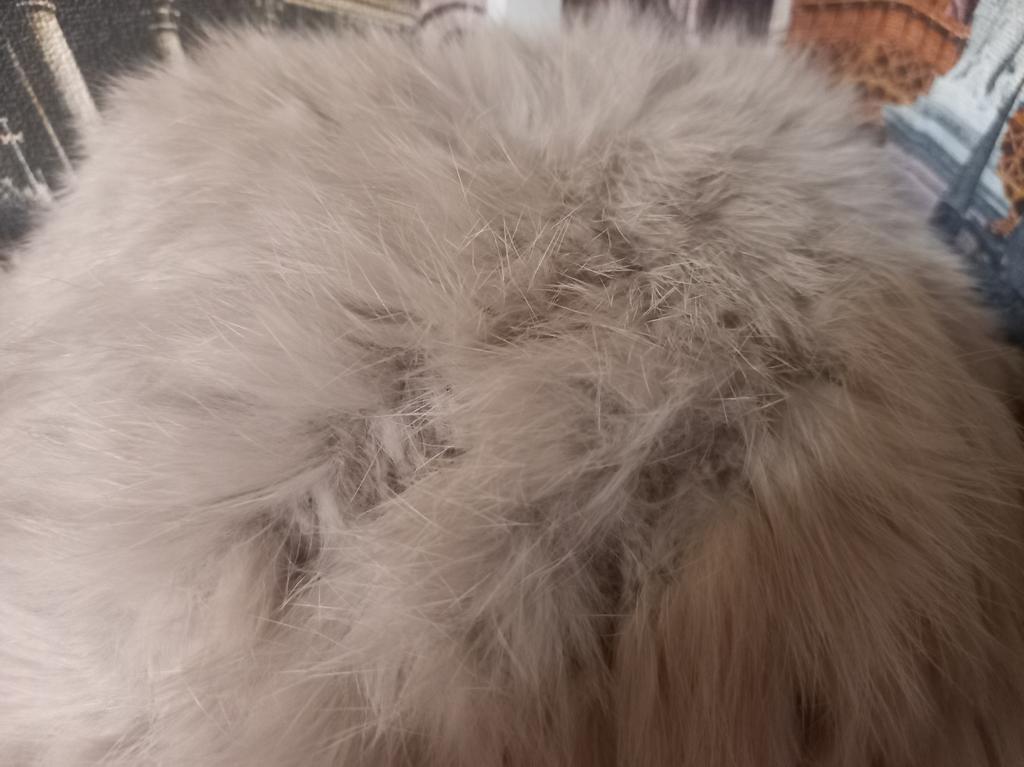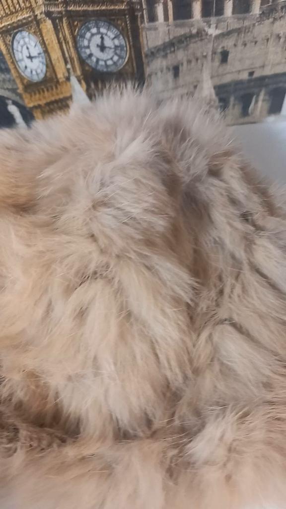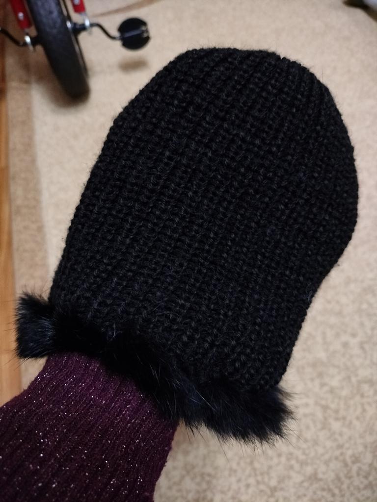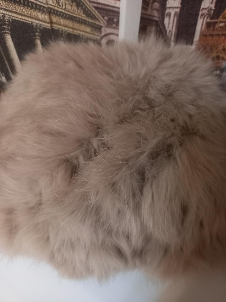 For now, I pulled the hat over the can so that the fur could straighten out. First impression: the color is not beige, rather yellowish and unevenly painted. You put it on your head and the base shows through. And the fur is coming out in places, although I havenβt worn it yet. It's like a bucket on my head. Not my style at all.