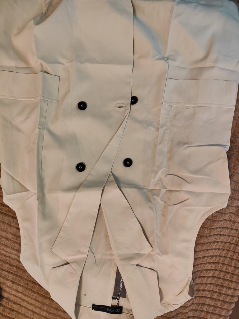 Reminds of a laborer's coverall, especially the cheap see-through fabric and buttons. The price is clearly inflated. There is a difference between the photo and reality.