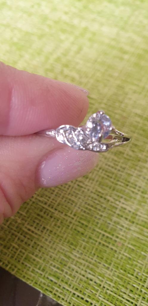 A beautiful ring, looks like silver on the finger.