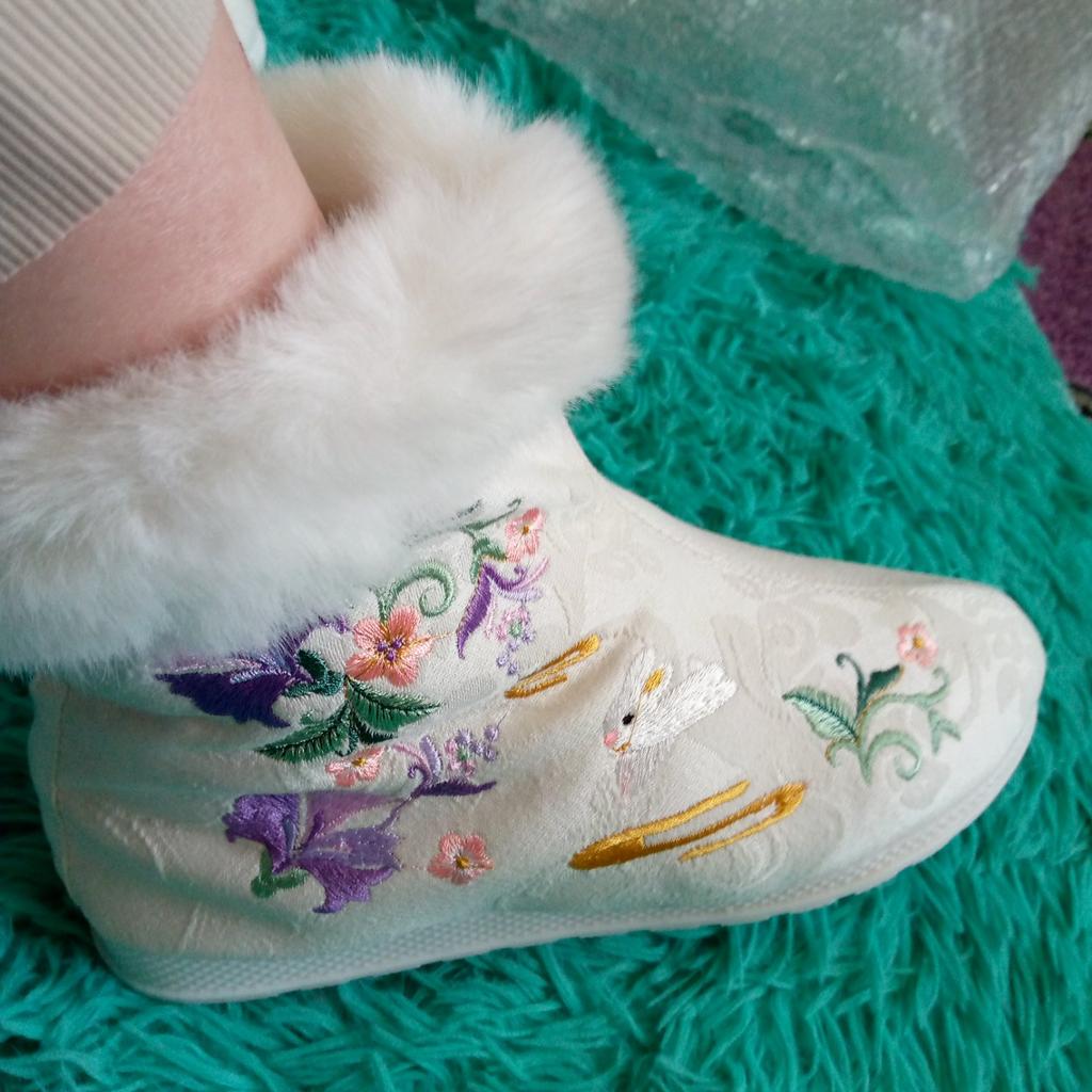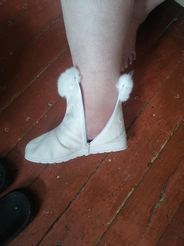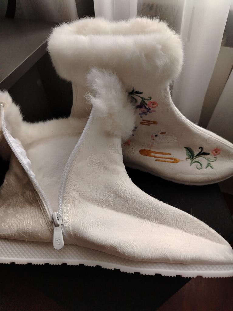 I ordered black ones for myself earlier, and the white ones have arrived now. They are warm, like felt boots, and very light. So now I have both black and white felt boots.