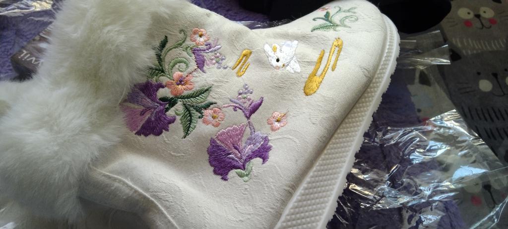 Purely homemade slippers, but they are too small for me. My foot didn't go in them at all, even though I have a low instep. Only for children.