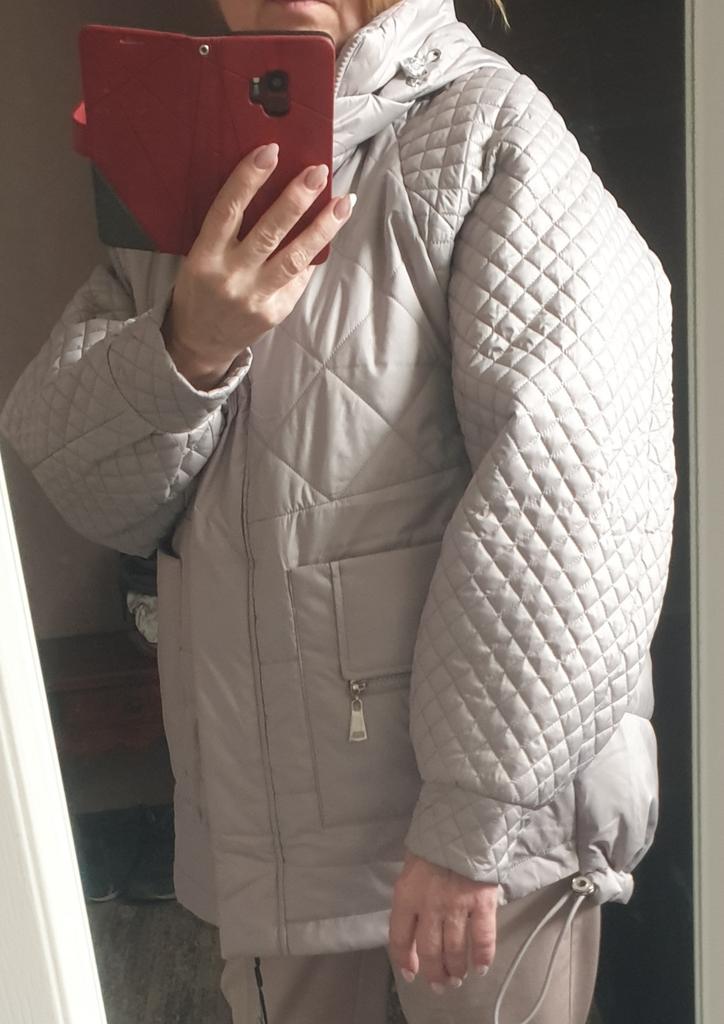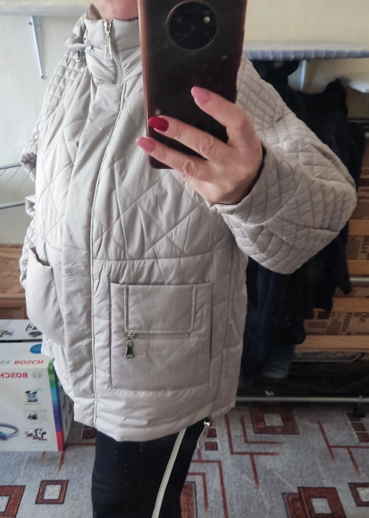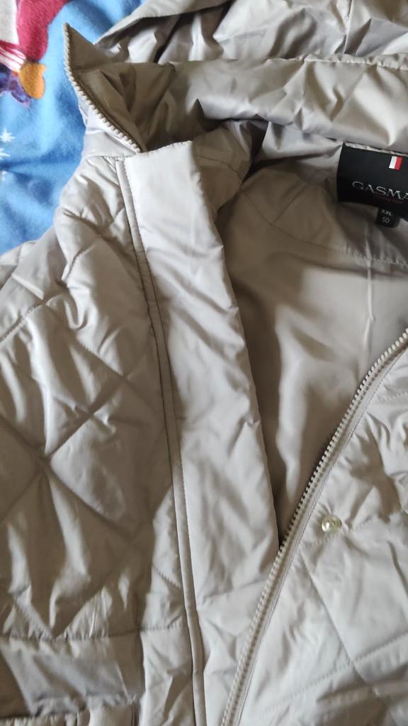 The jacket is wonderful, looks expensive, the sewing quality is good, it fits my 52 size loosely, doesn't cling.
