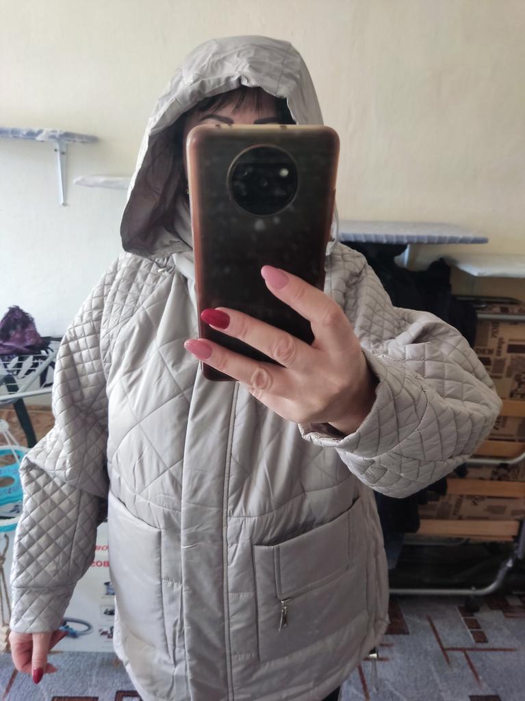 The color is pearl, very noble, the jacket is comfortable, both in cool weather and in the rain, but the hood will not save you from the rain