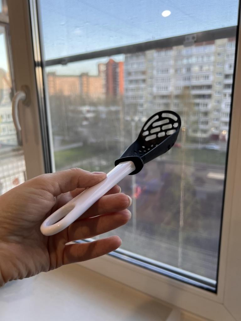 Universal kitchen spoon. This multifunctional kitchen spoon is suitable for mixing, grinding, removing foam, extracting from hot water, making purees, chopping, and will become an indispensable assistant in the kitchen. This spoon can be used to remove dumplings, dumplings, pasta, vegetables or meat from hot water. Use to remove foam from broth during cooking. Also use as a masher - for preparing vegetable and fruit purees. Hard spikes on the bottom outer part of the slotted spoon will help you quickly chop garlic and ginger. The cutlery is made of high-quality plastic and does not absorb odors and tastes. Dimensions: 23x7.5 cm. The spoon is comfortable to use. I recommend.