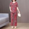 Plus Size Elegant 2 Piece Sets Womens Outfits Summer Vintage Print Wide Legs Trouser Sets