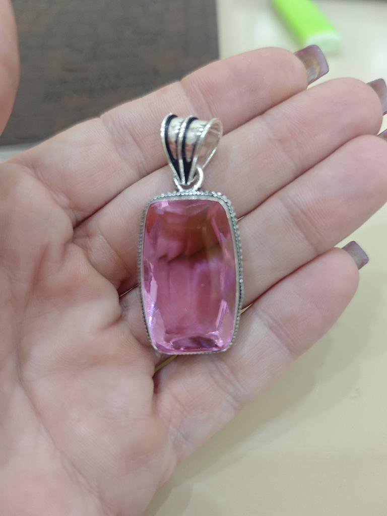 Pink Topaz Gemstone Pendant Solid 925 Sterling Silver Pendant Jewelry Gift For Unisex