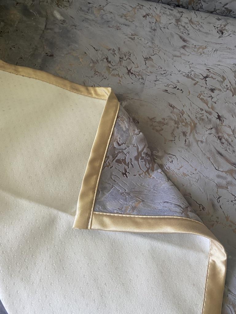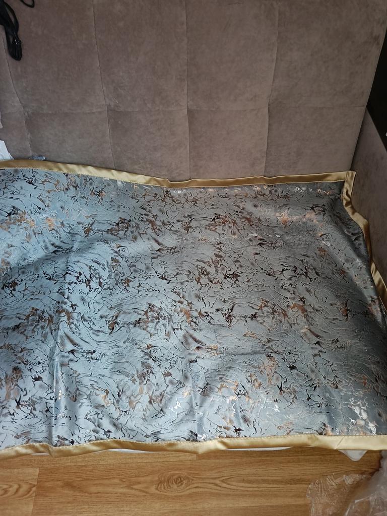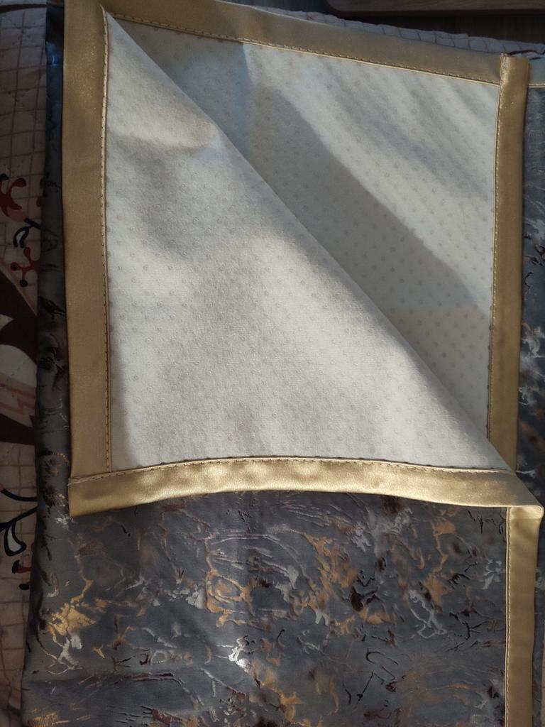 Received the third napkin, will make a pillowcase, as well as a cover for the pouf, very beautiful, pleasant to the touch and don't slip! Thank you very much! The first two are throws for the sofa!