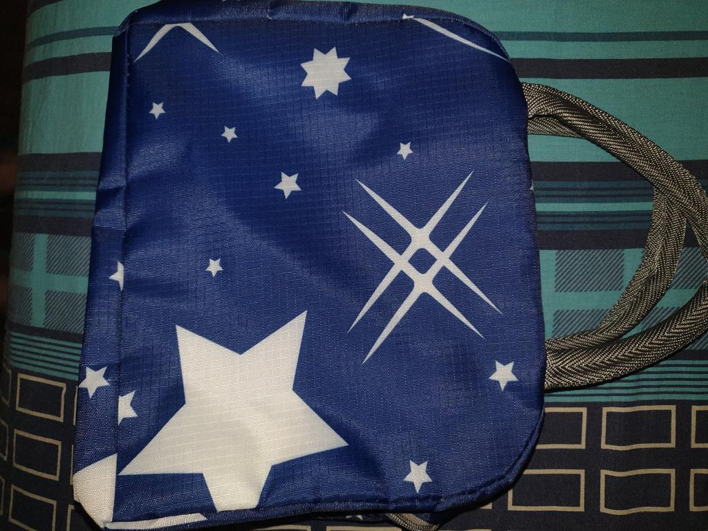 The zipper is not fully sewn, but the picture is great. It is suitable for a couple of sandwiches and a bottle of water.