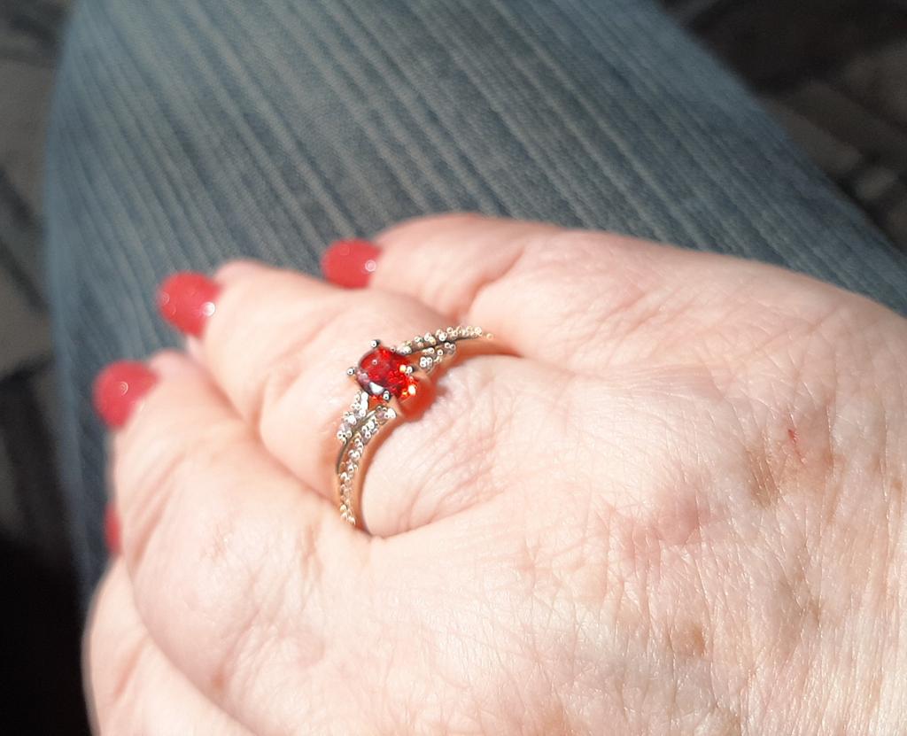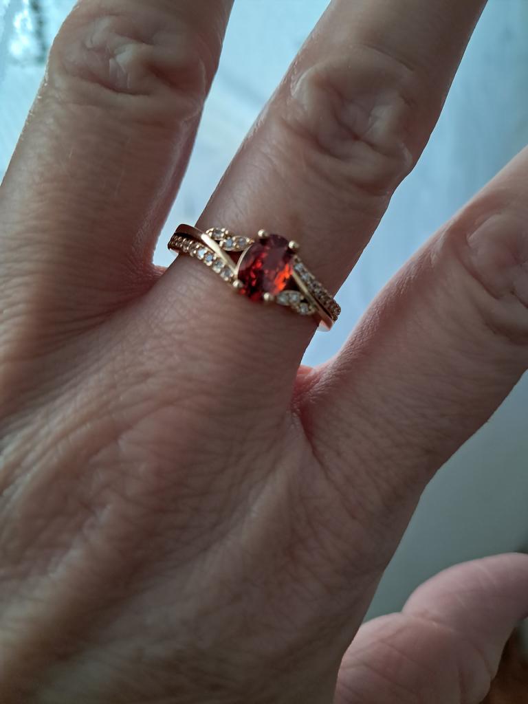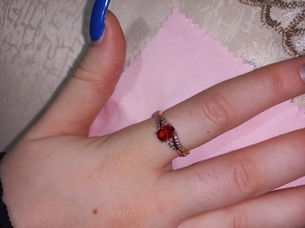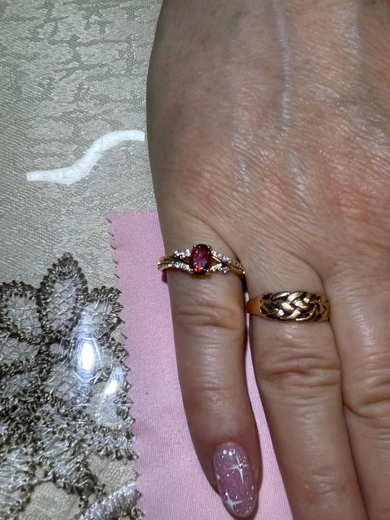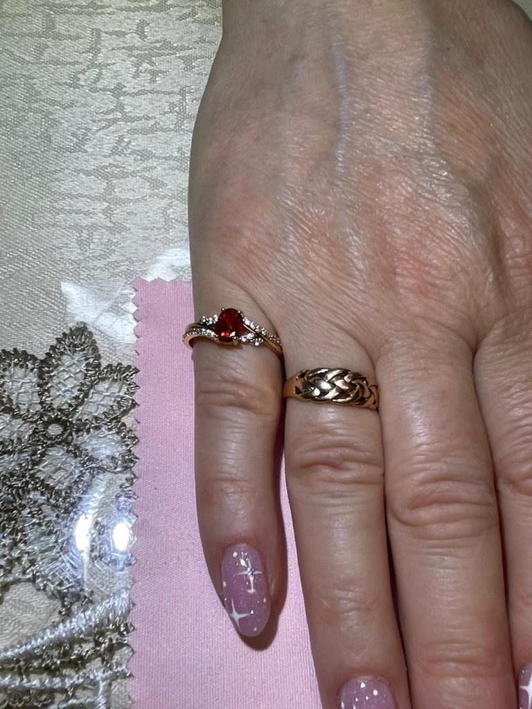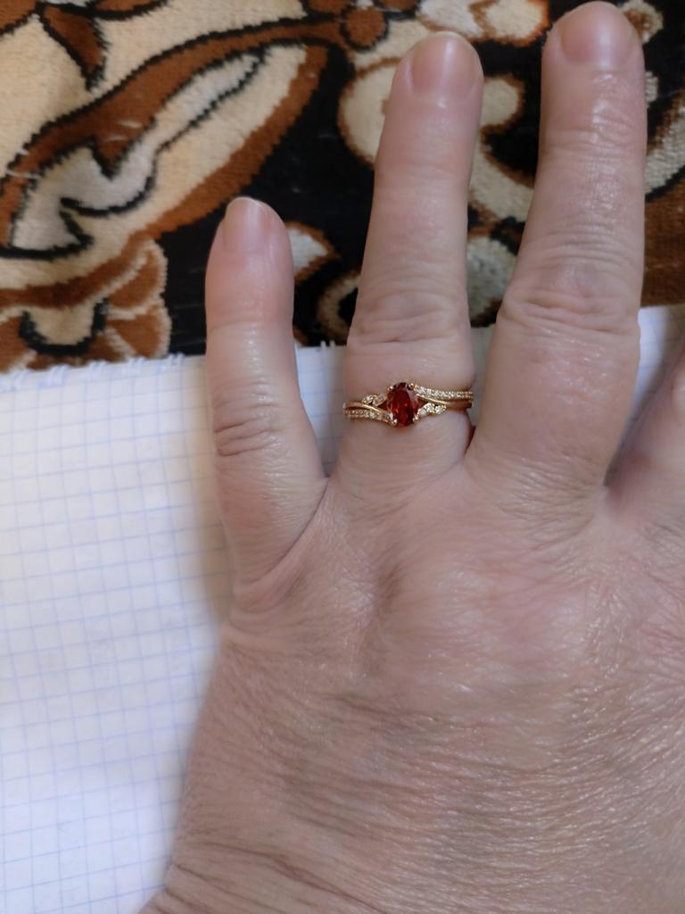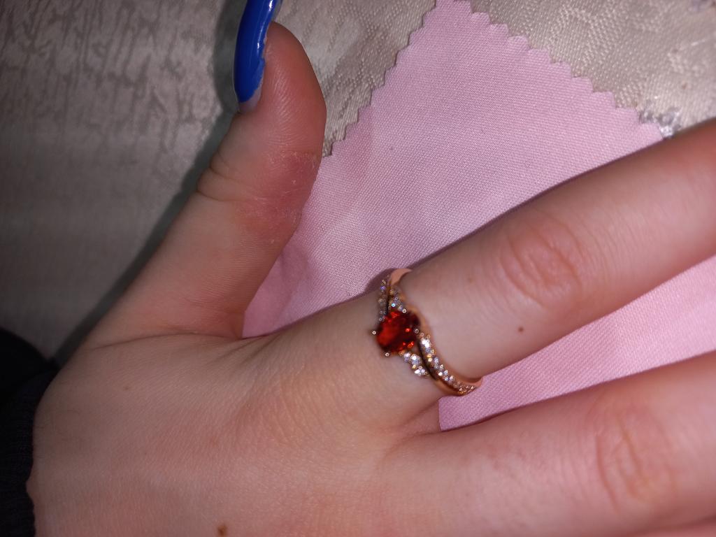 The ring is great! I guessed the size 100%. Only the stone is not a deep red, but closer to red-orange. But it looks beautiful, expensive. I ordered earrings in the set so that there would be a set.